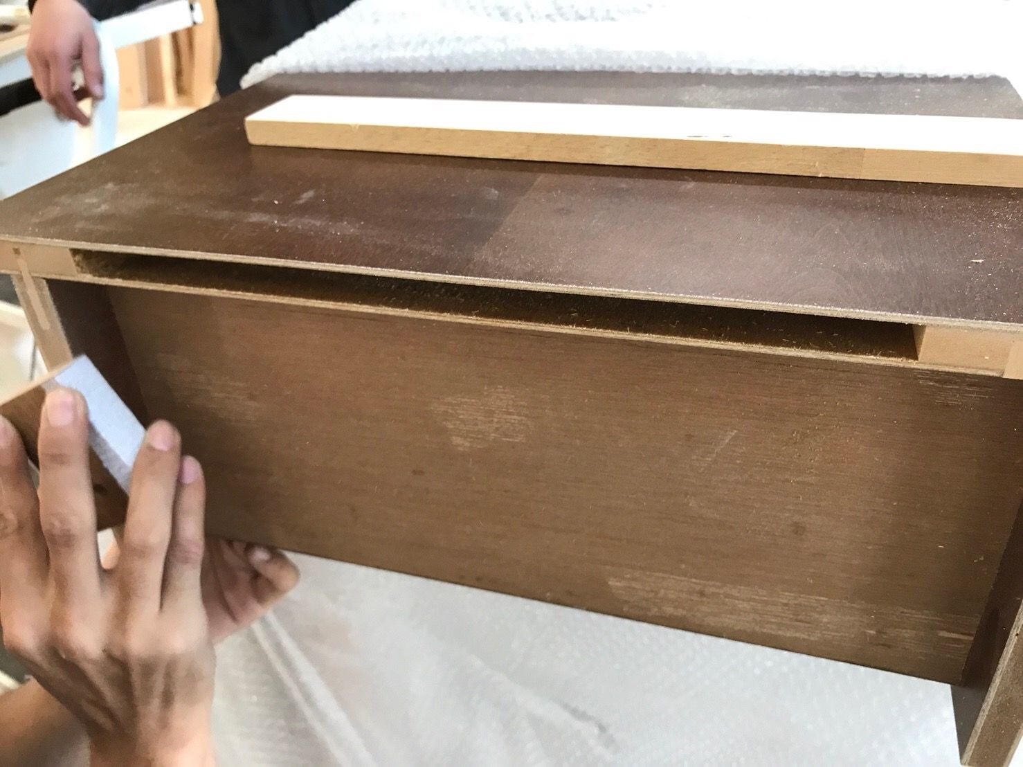 どうやってリサイズしたかというと、鏡側の下部をカットして高さを調整することでスペースに収まるようにしたんですけど、実はリメイクの作業としてはこれだけではありませんでした。