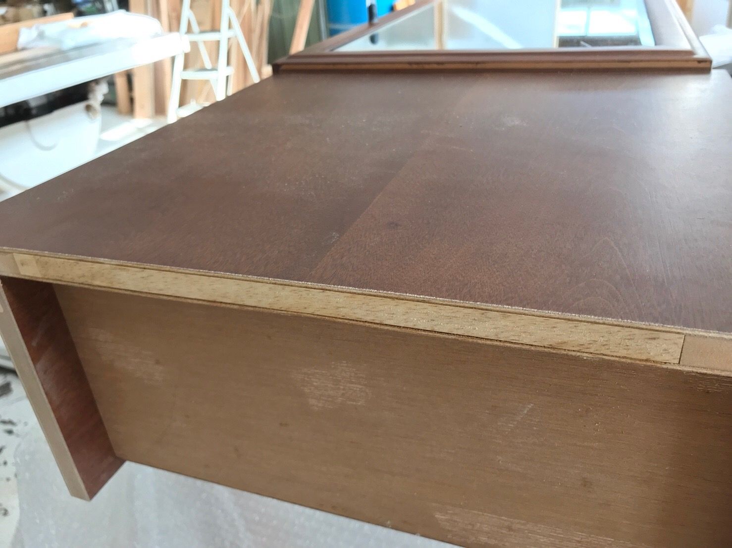 鏡とキャビネットが連結している構造だったので、鏡側の高さを変えたらその連結部分なども加工する必要があります。