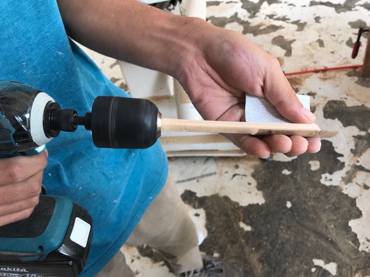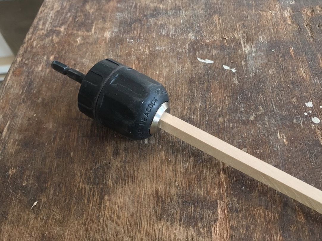 角棒をインパクトドライバのアタッチメントに差し込んで・・・