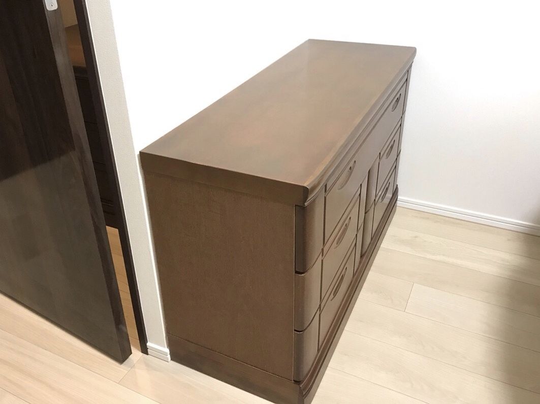 最近はもともとウォークインクローゼットなどの収納機能が備わっているお家が多いですよね。ご相談くださったお客様のお引越し先もその通りで、大きな婚礼タンスは持て余してしまうとのことでした。