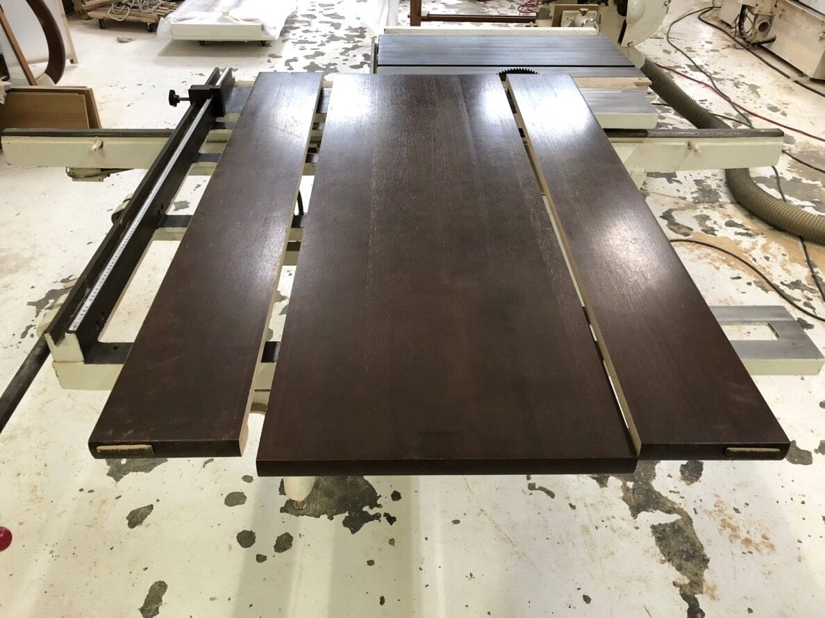 そこで、①については脚の取り付け部分などをそのまま使えるように、天板を3分割してから両端を接ぎ合わせてリメイクしました。