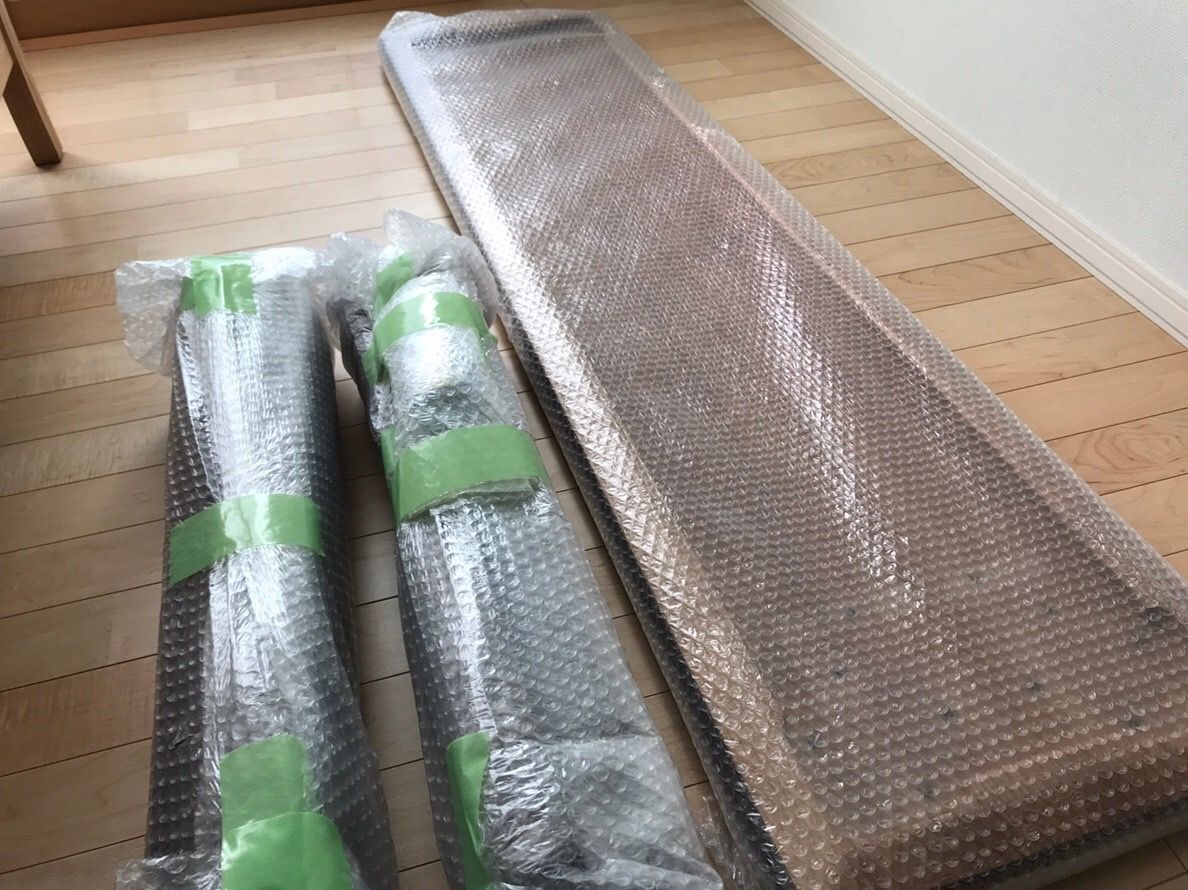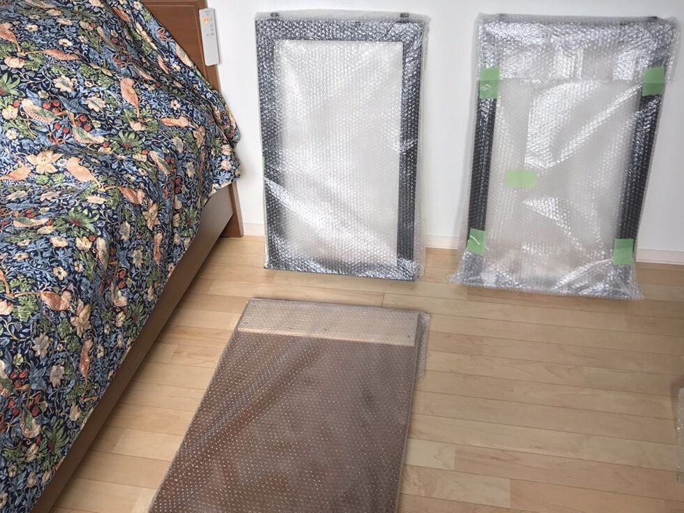 どちらのテーブルも脚が取り外し可能なネジ式なので、分解した状態で搬入しお客様のお宅で組み立てました。