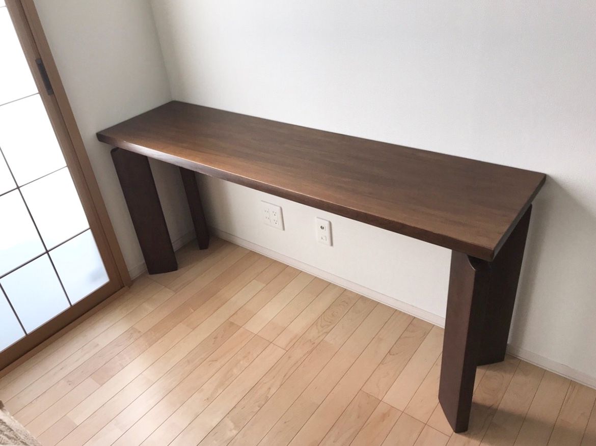 元のテーブルの脚を使用した①は、お部屋の入り口入ってすぐ、窓際壁面にピタリと収まるサイズに。