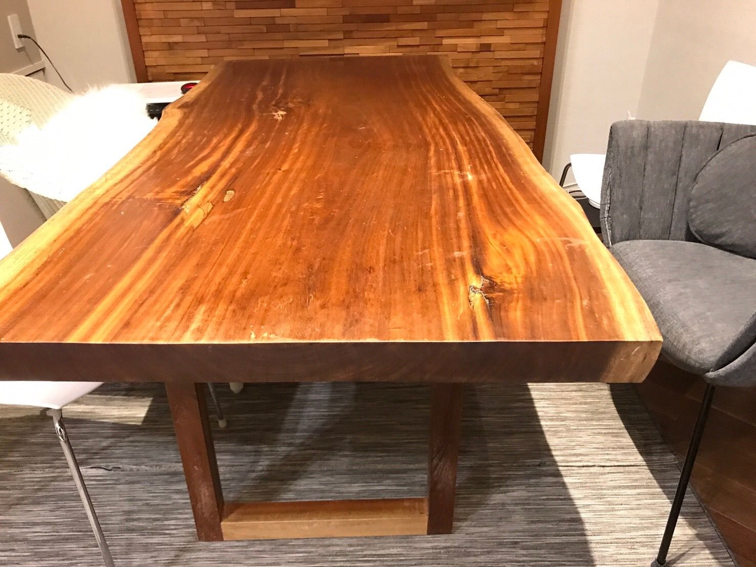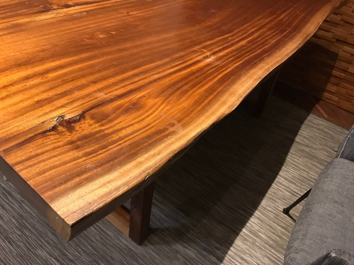 無垢一枚板ダイニングテーブルをリメイク!ヒビ割れや節の跡も綺麗に