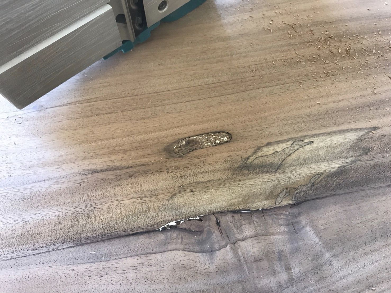 ただ、奔放な無垢一枚板は自然の恵みを感じることができる一方で、短辺が斜めカットになっていたり、ヒビ割れや節の汚れができてしまったり、気になるところもあったそうです。
