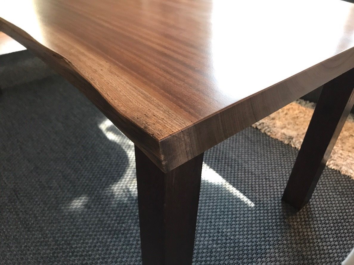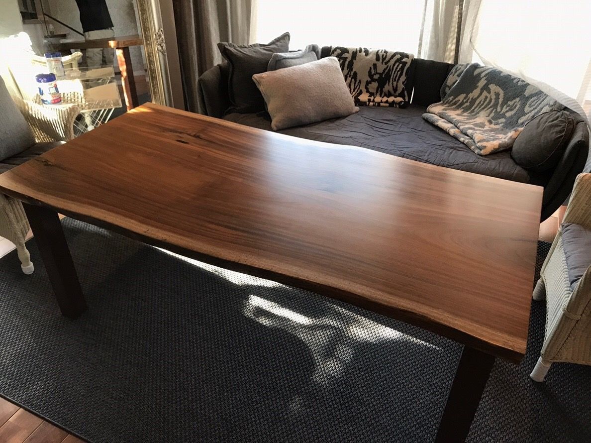 無垢一枚板の貫禄はそのままに、ハーフマットの上質な光沢が美しい上品なテーブルとなりました。