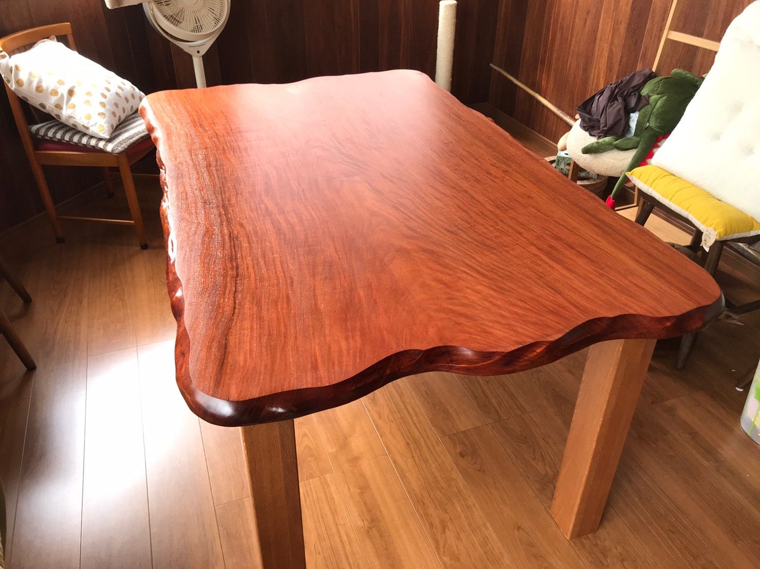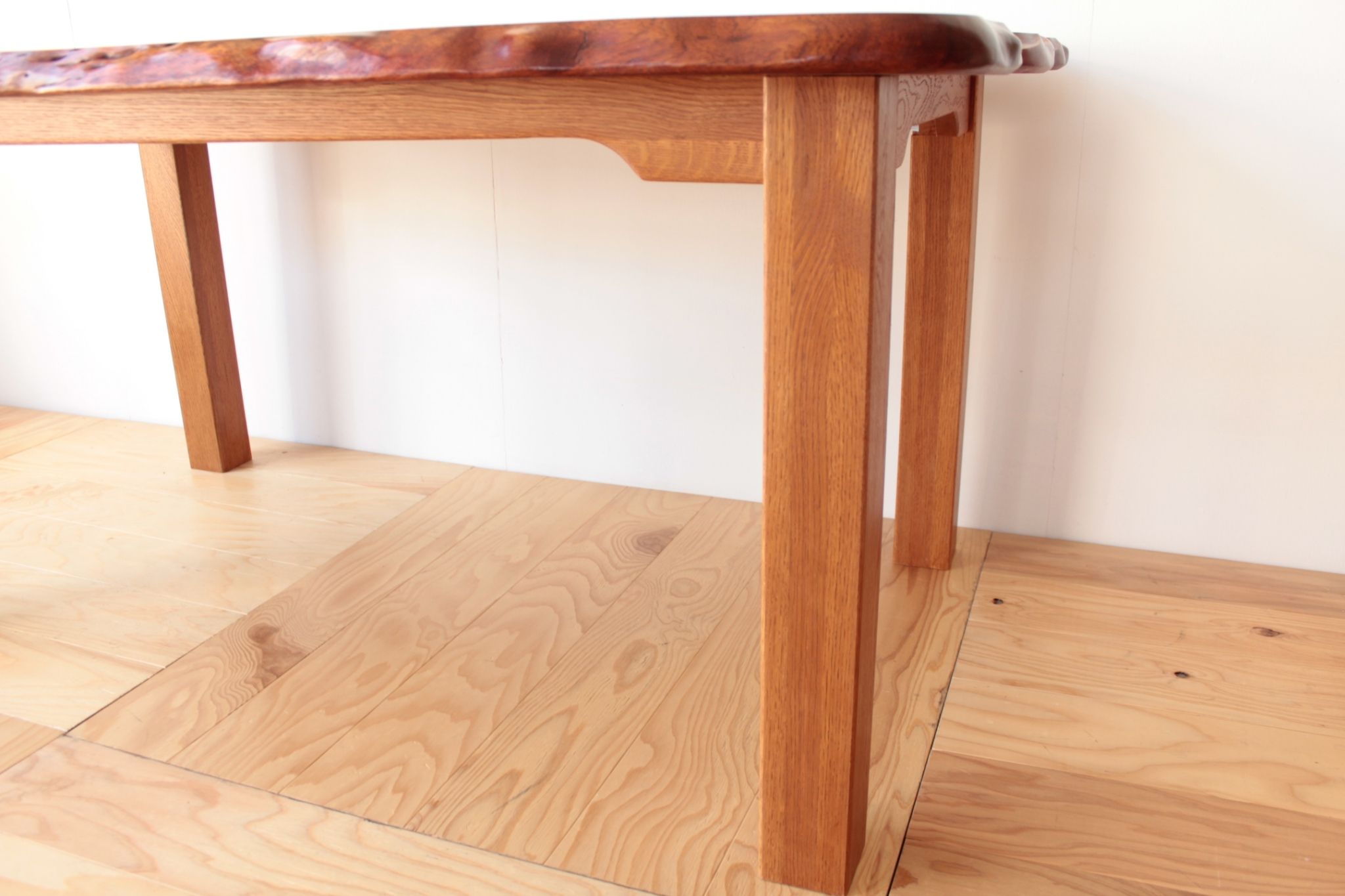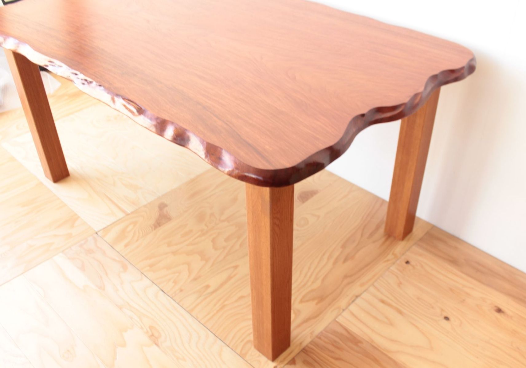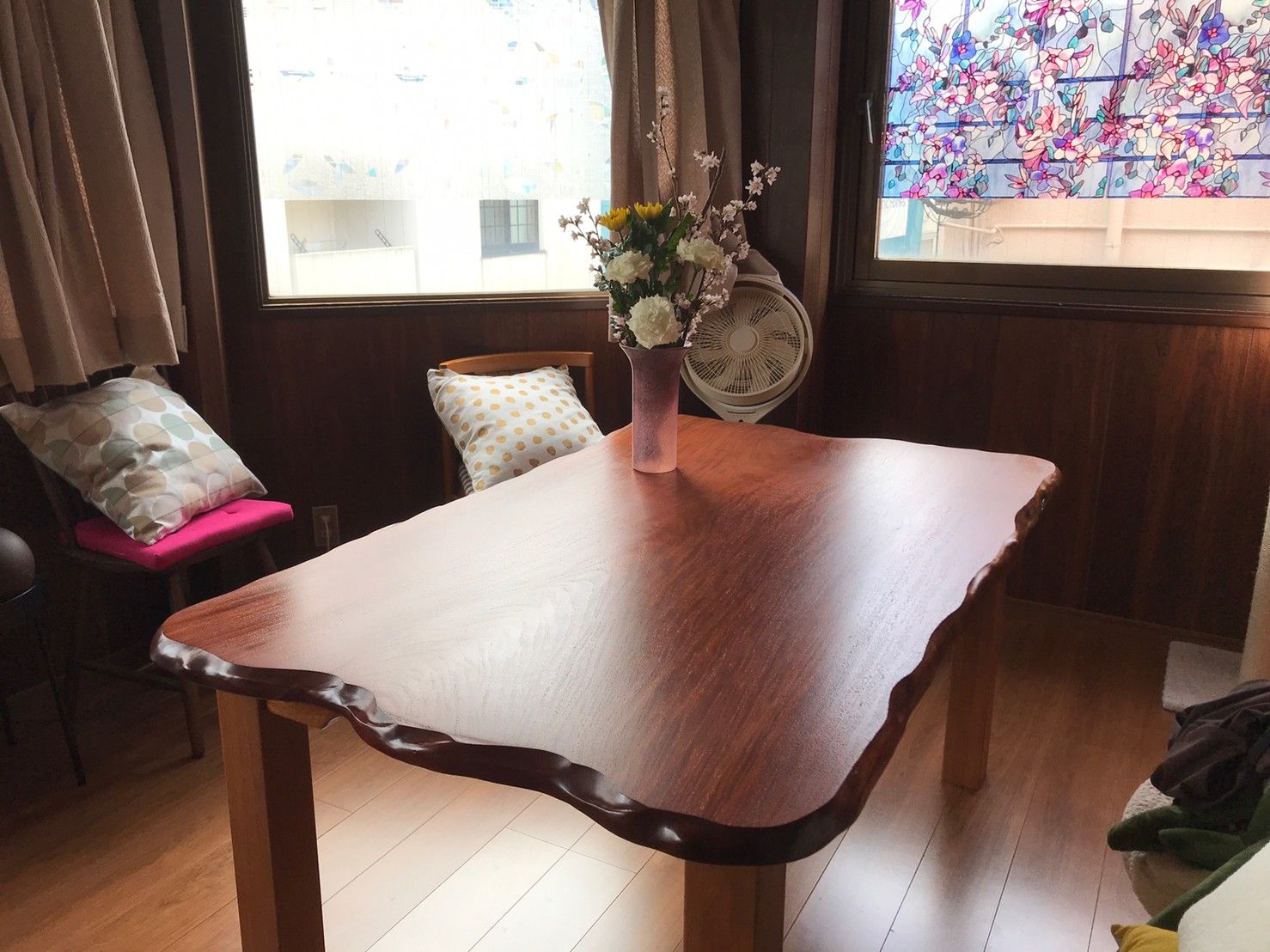 お父様の形見の座卓ををリメイク。耳付き無垢一枚板を食卓テーブルに