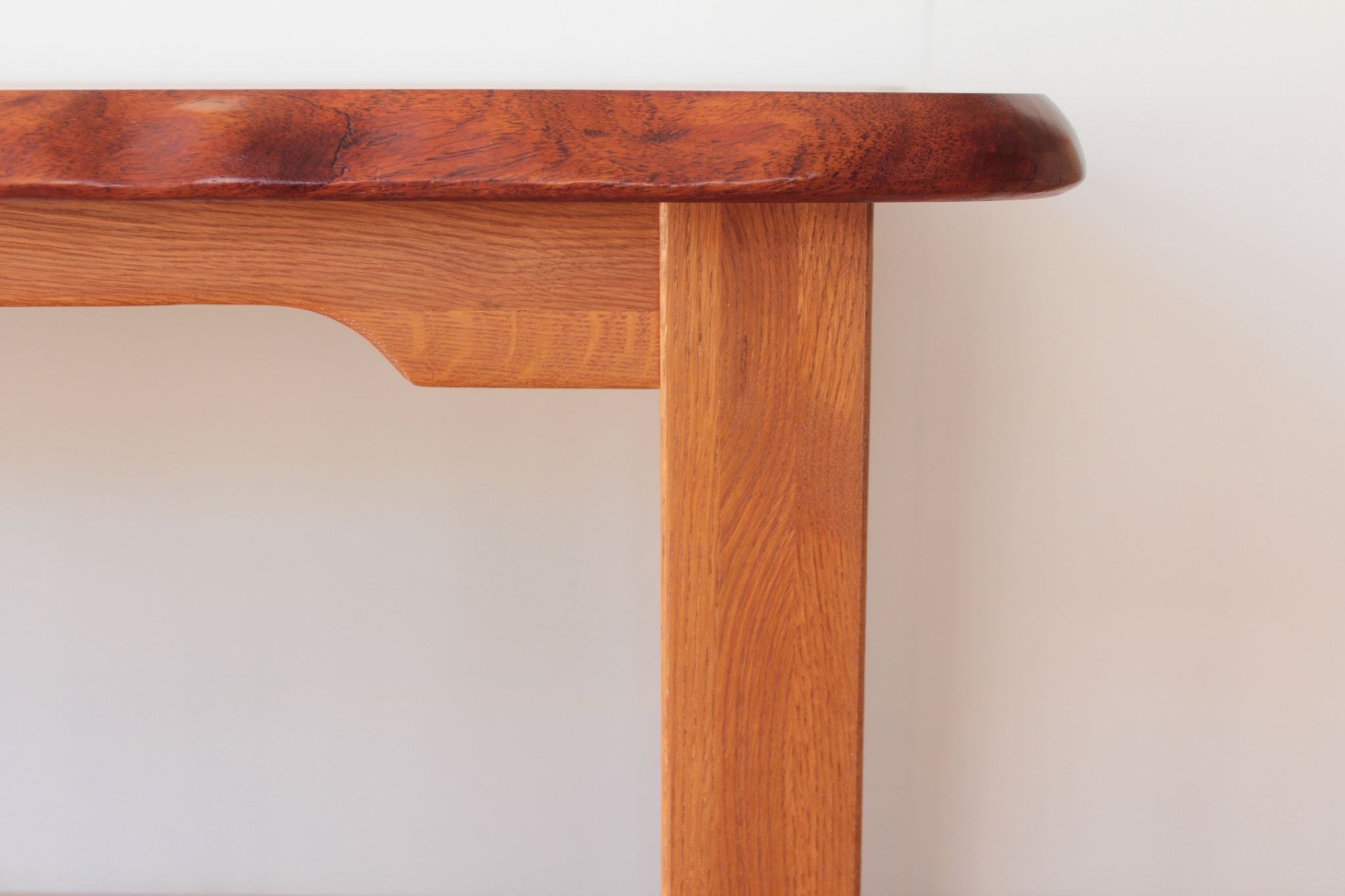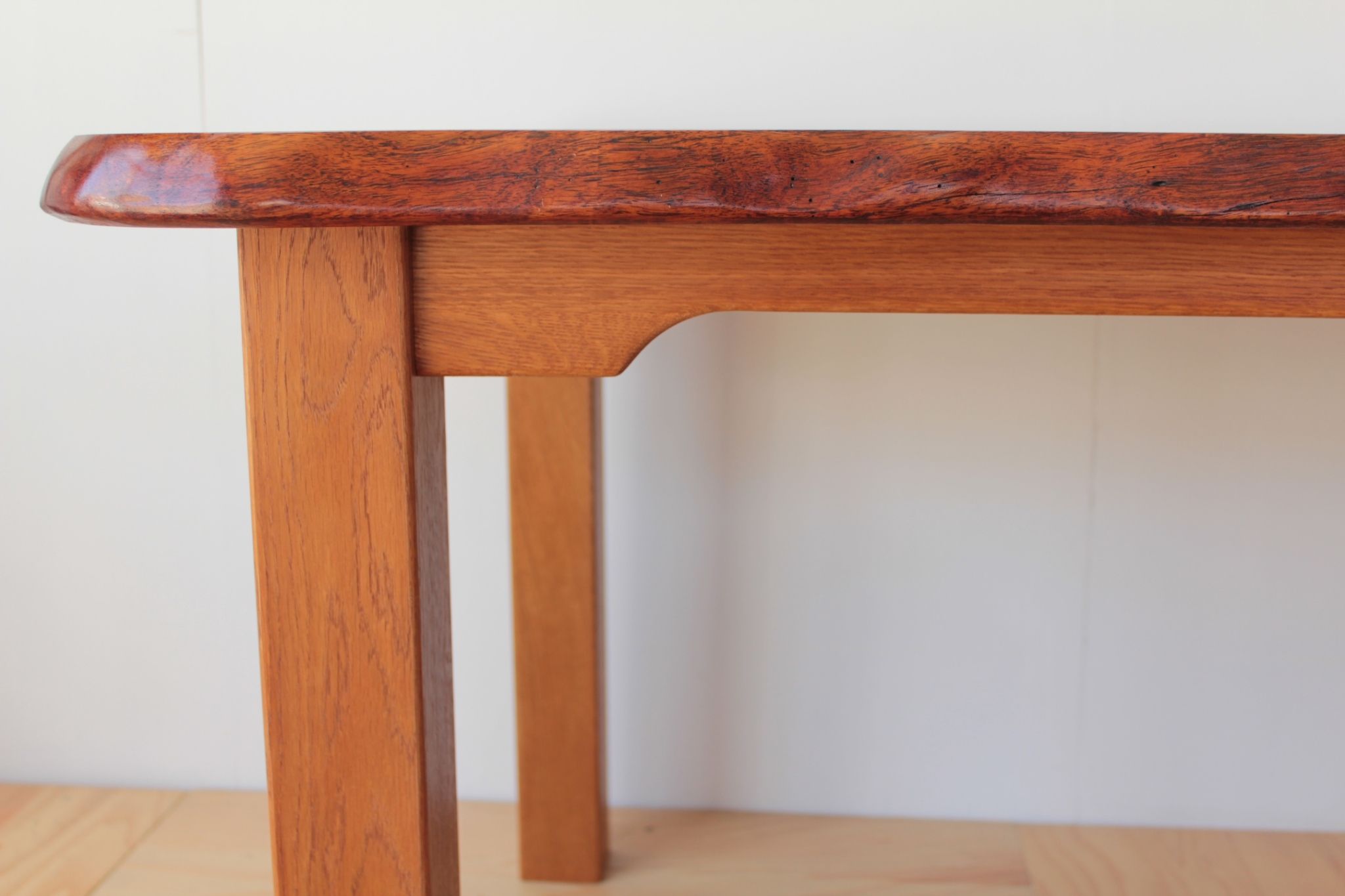 ウォールナット×オークのROOTS FACTORYのオリジナル商品『WELL/TABLE1』に通じる雰囲気を持ちつつ、耳付きの天板の味わいが独特の存在感を醸し出しています。