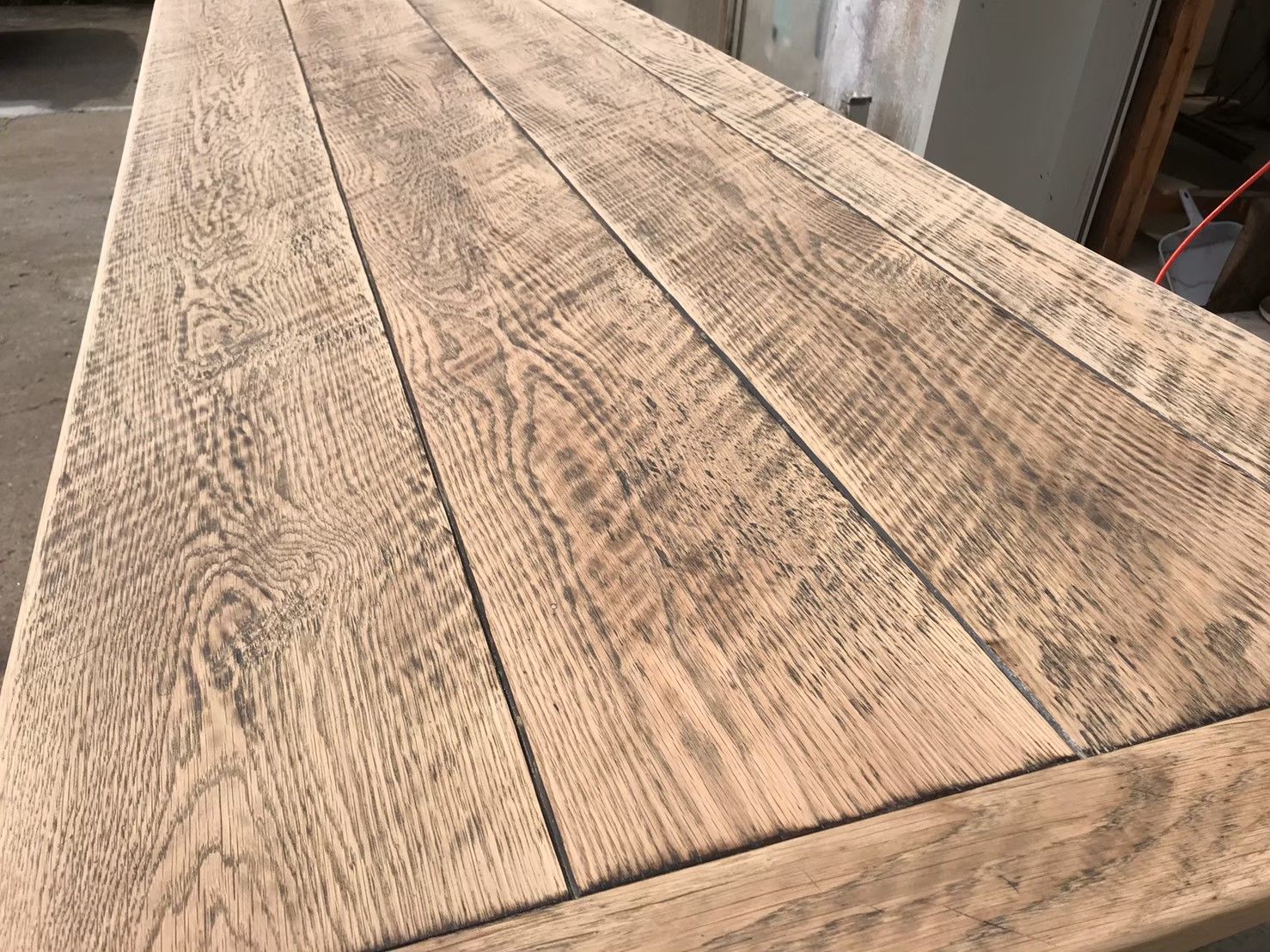 木の導管に染み込んでいる塗料は落としきることもできるのですが、やり過ぎると天板が薄くなってしまうし雰囲気も損なわれてしまうので、お客様に色味をご確認いただきながら、進めていきました。