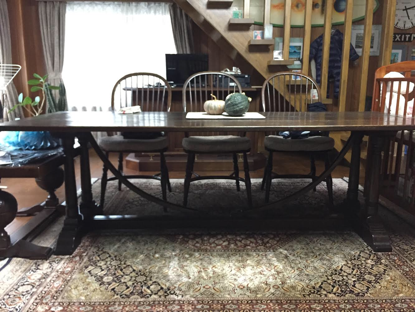ちなみに、天板もフレームも無垢オークでできていて、2人がかりで持っても大変なほどかなり重かったそうです。とにかく立派なオランダ家具でした。