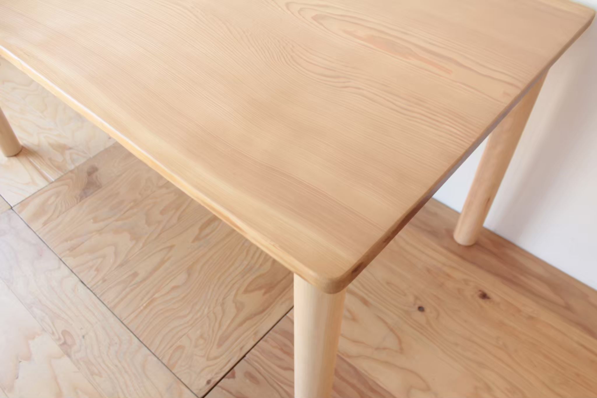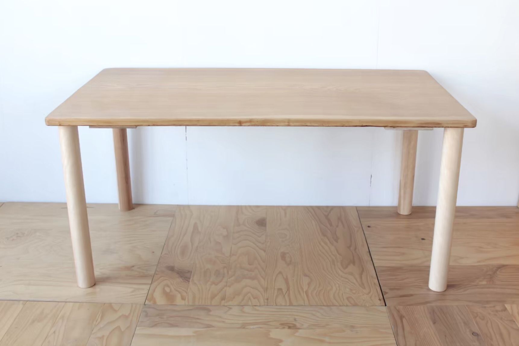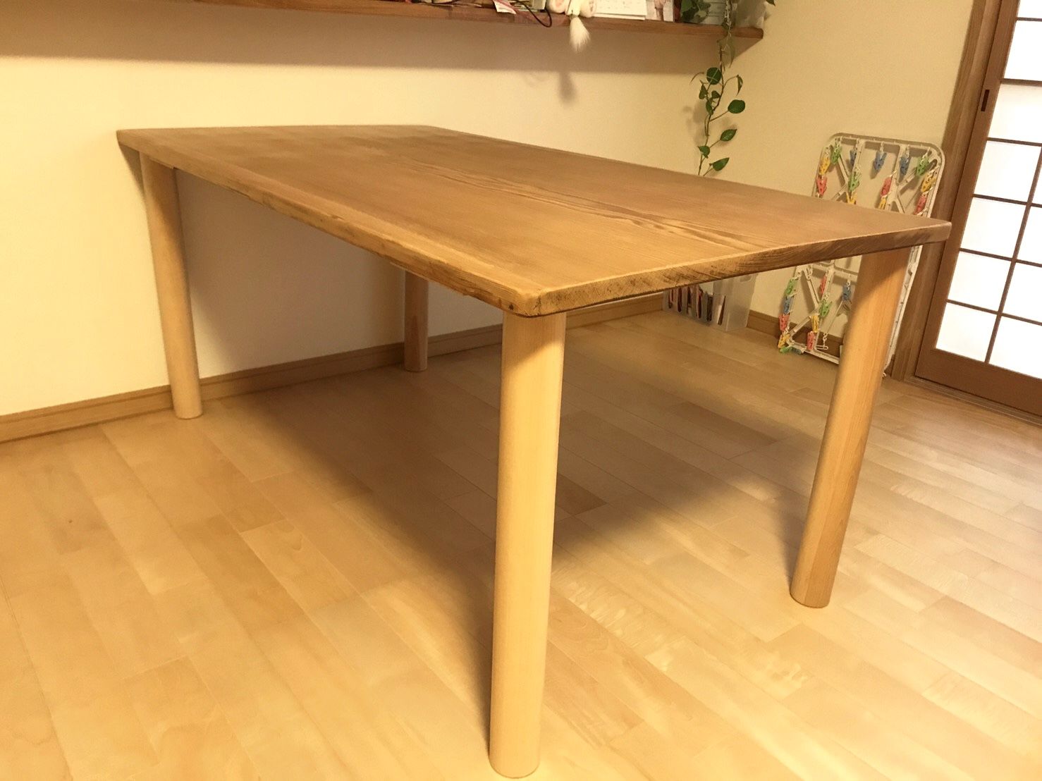 ちなみにこちらの丸脚はねじ込み式で、工具などなくても簡単に組み立て・分解できます。(無垢一枚板だったので天板裏が真っ直ぐではなく、脚を取り付ける際に裏地調整なども必要だったのですが、その辺りのことはまた別のブログで詳しく書きますね!)