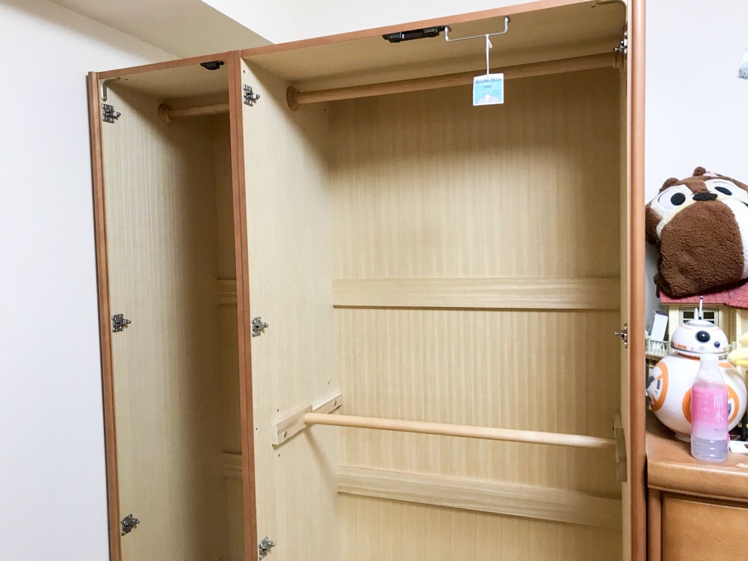 ハンガーバーが2段に設置されていて、とても使い勝手の良さそうな婚礼箪笥ですね。