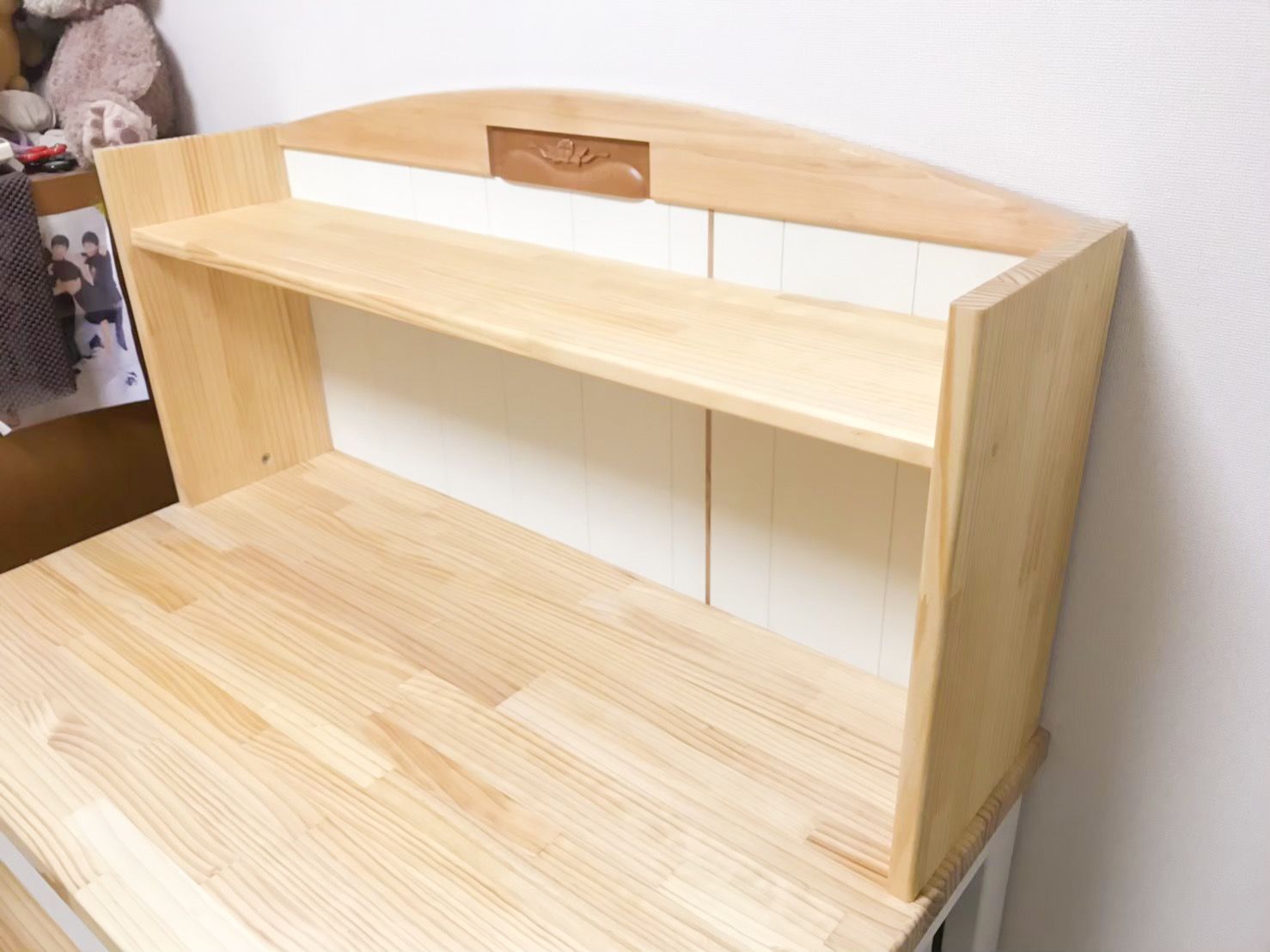 お客様にお話を詳しくお伺いすると、白を基調としたカントリー調の勉強机をご希望で、元の婚礼箪笥のイメージを残さなくても構わないとのことでした。