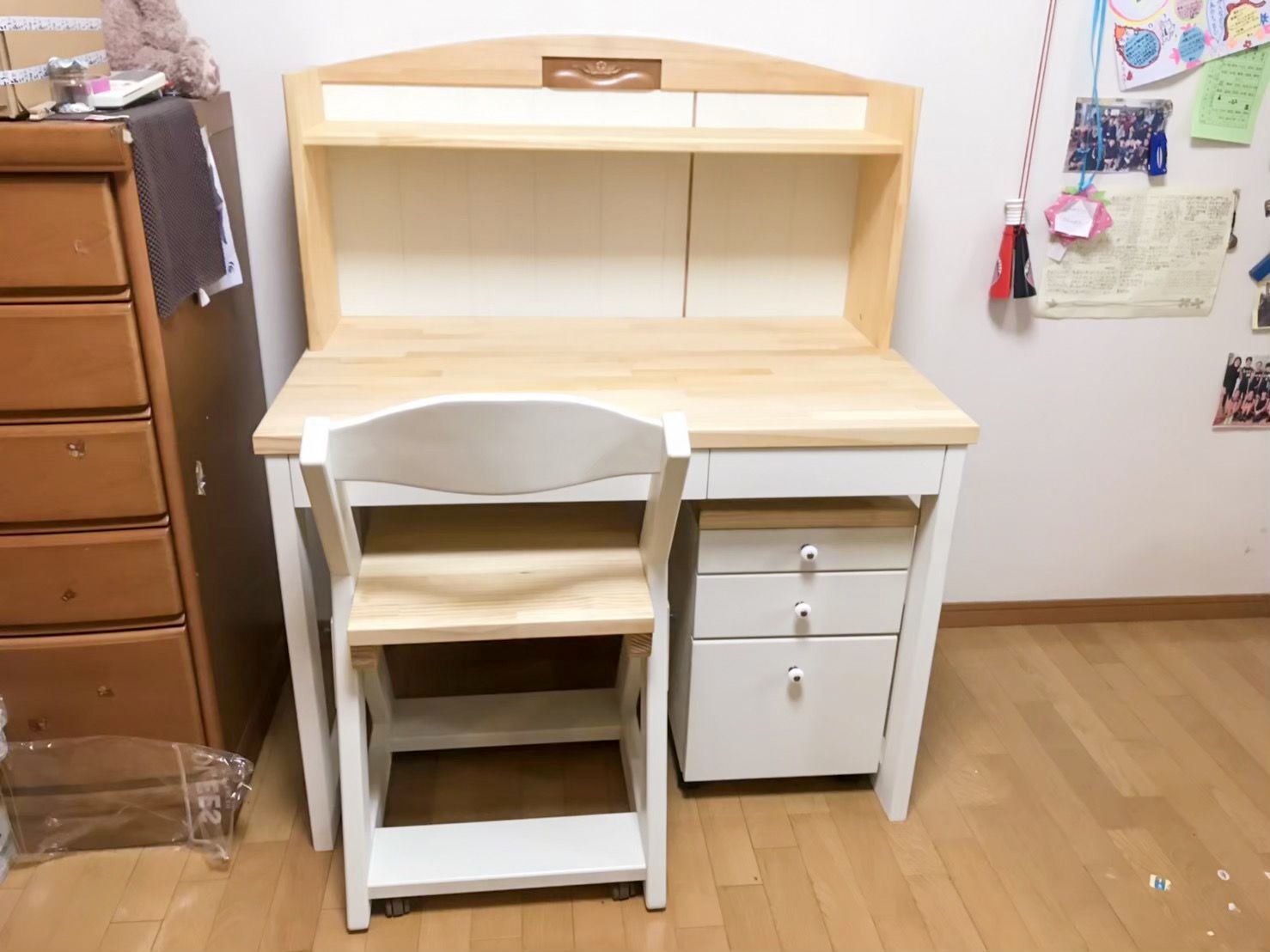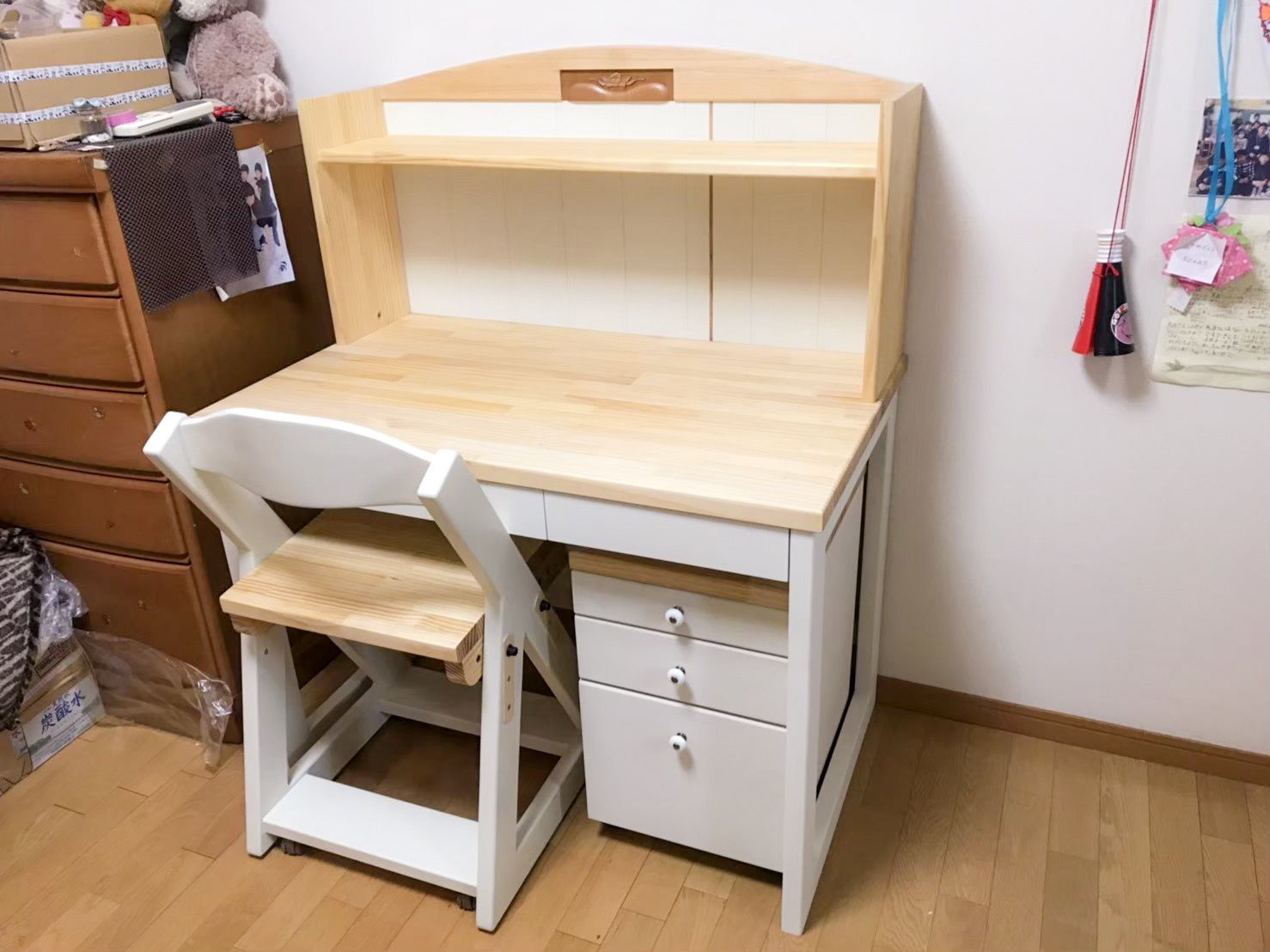 それではご覧ください!勉強机とインワゴンの完成です。