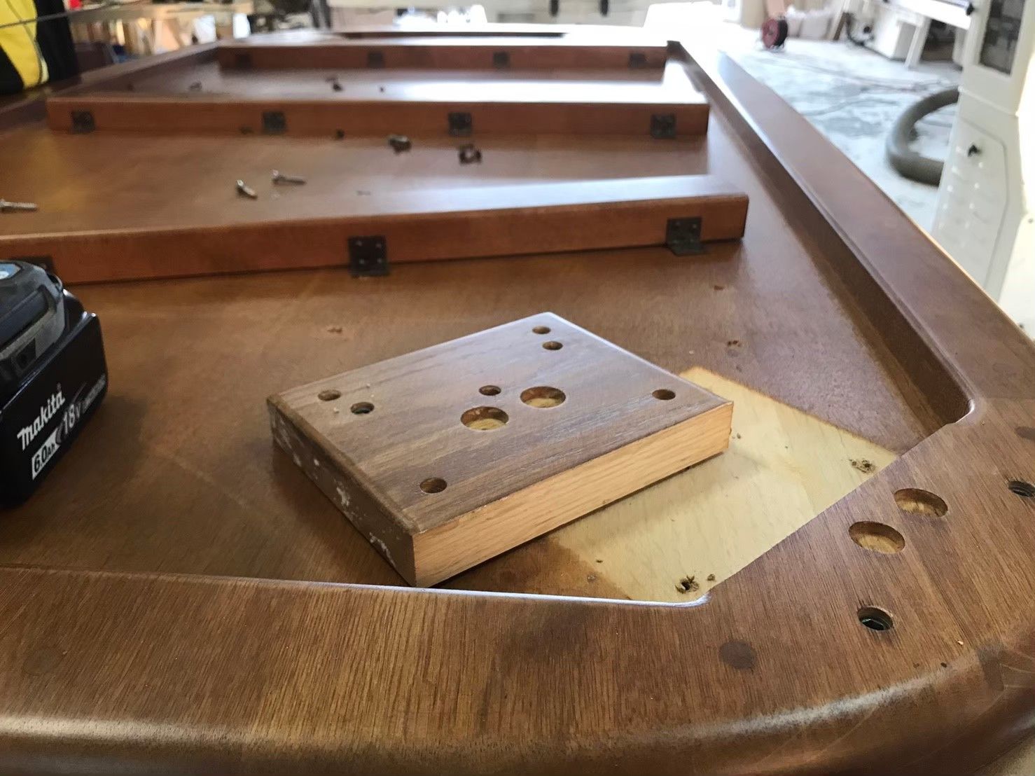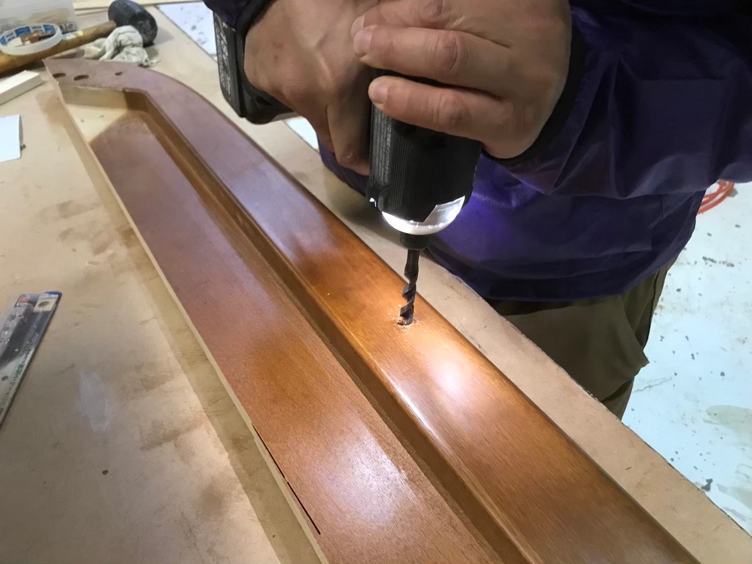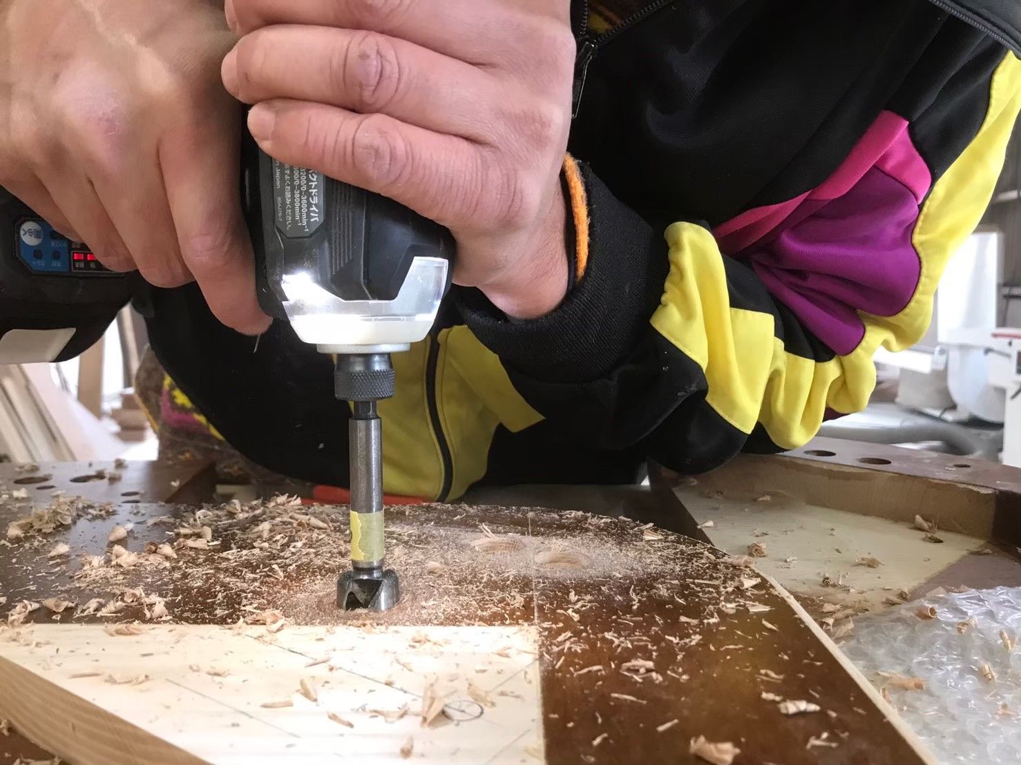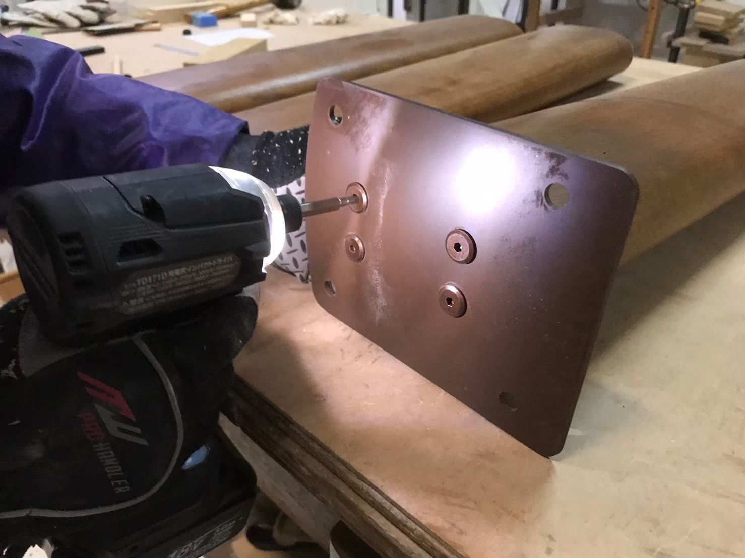 この短くなった脚に改めて穴を開け直して、それからもう一度金物を仕込みました。