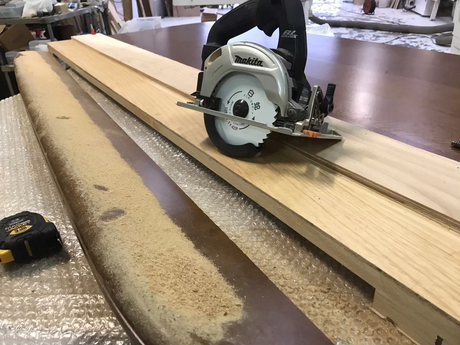 今回のように長くて分厚いものは、どの機械も規格が合わなかったため、丸ノコを使うしか手はありませんでした。