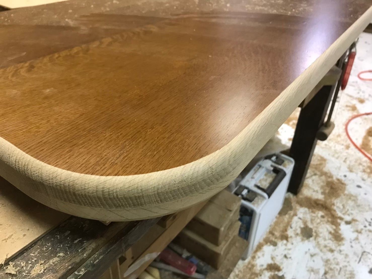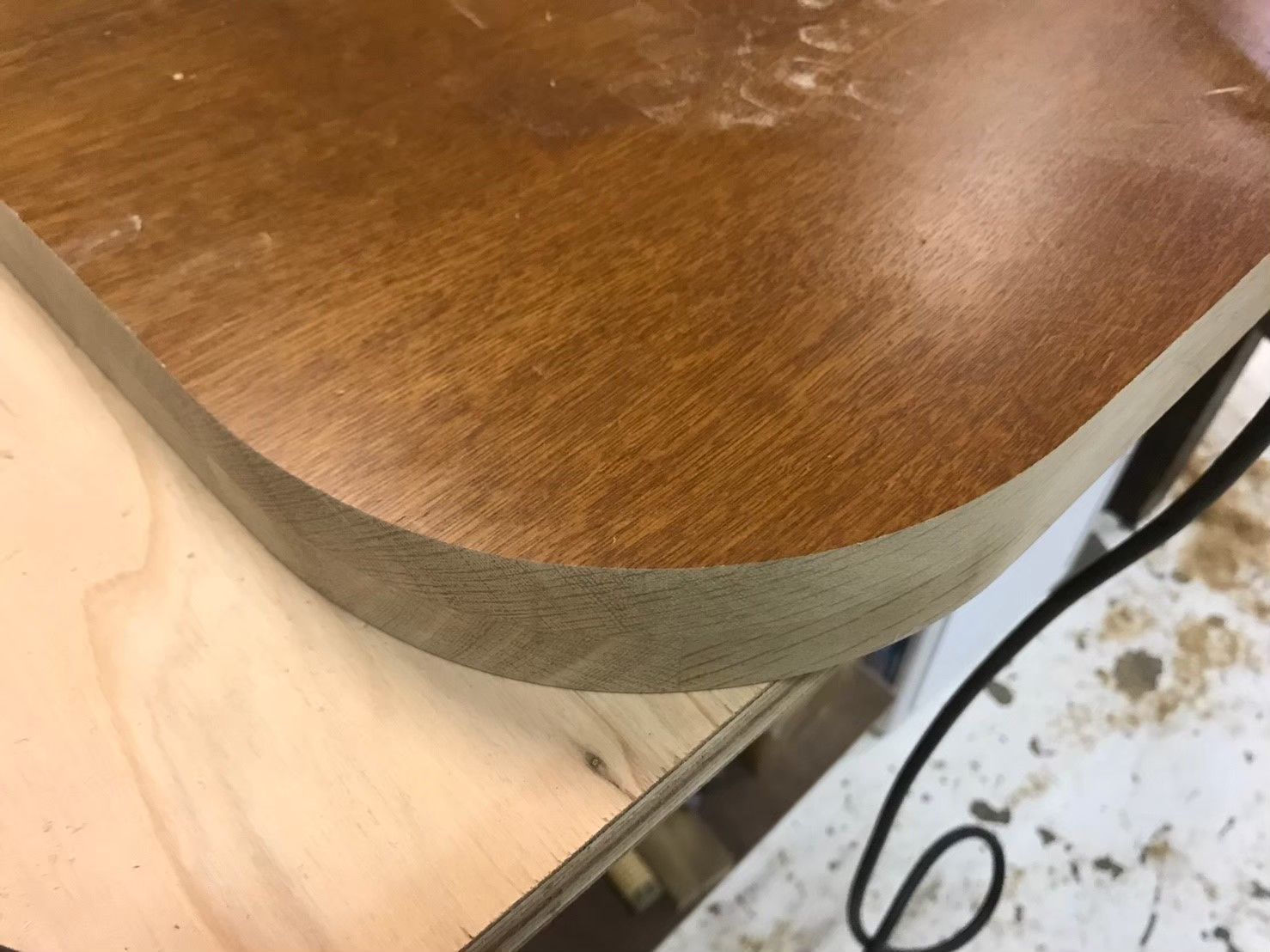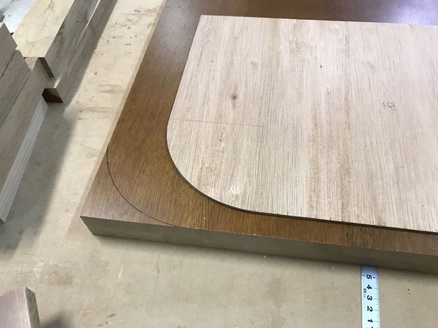 天板をカットした後は、角を元のテーブルと同じRにする作業。