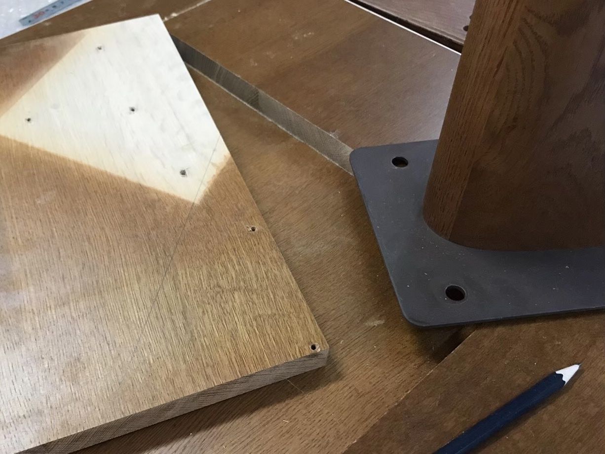 ところで、実は天板のサイズを小さくしたことで、縁の部分の大きさが足りなくなってしまい、元の金具が天板に取り付けられなくなりました。
