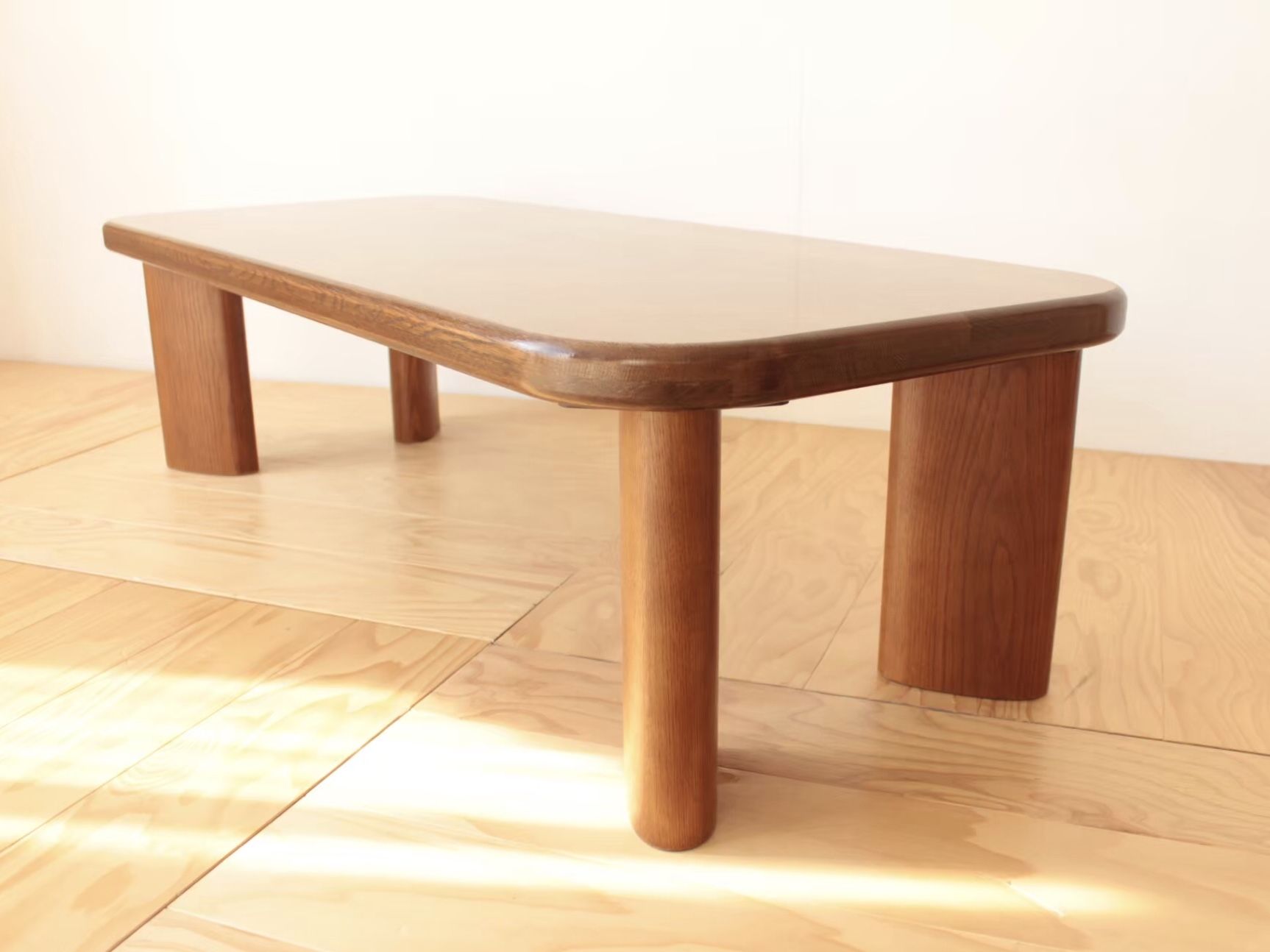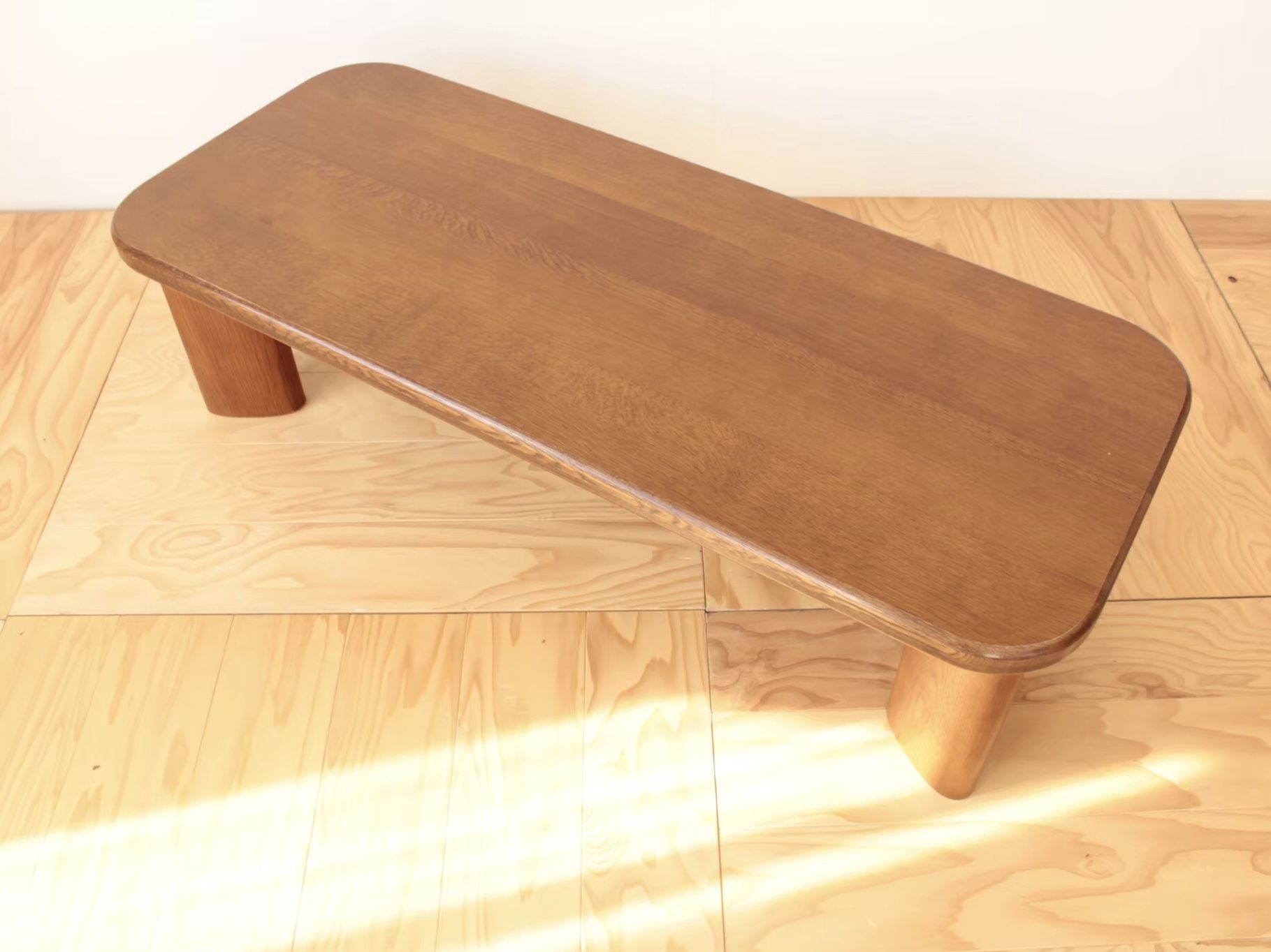 とても大きく存在感はありますが、温かい色味と角のRが効いているからか、柔らかい印象を受けます。凄く素敵なテーブルですよね。