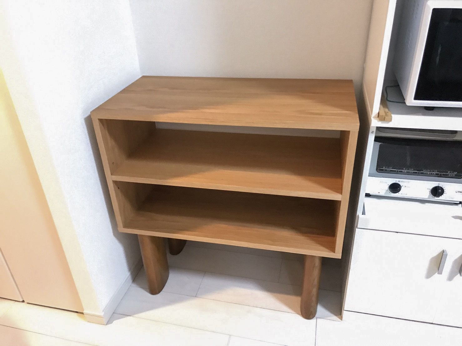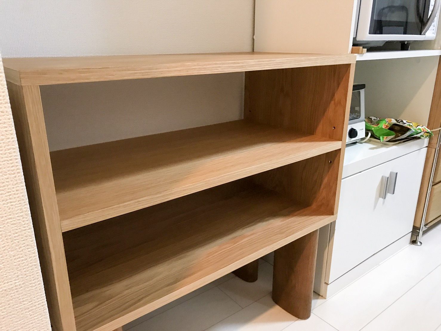 ダイニングテーブルのお引き取りに伺った際、「テーブルを座卓にリメイクした後に残った材料を使って飾り棚を作ってほしい」とお伺いしておりました。