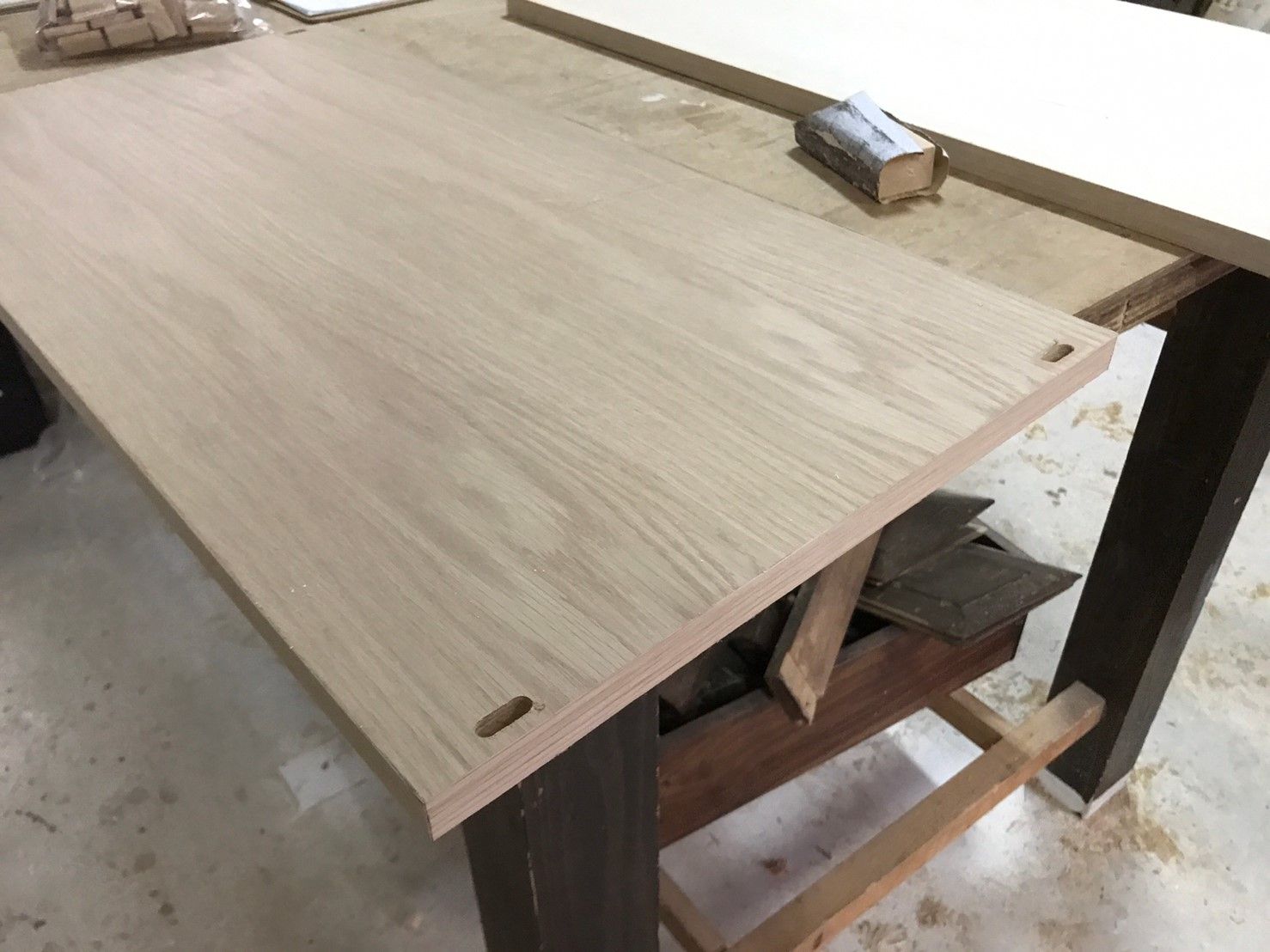 ですが、リメイクは作業を進めてみないとどのように材料が残るか分からない部分があります。ですので、先にテーブルから座卓をお作りして納品させていただいて、その時に再度飾り棚の打ち合わせをさせていただくことになりました。