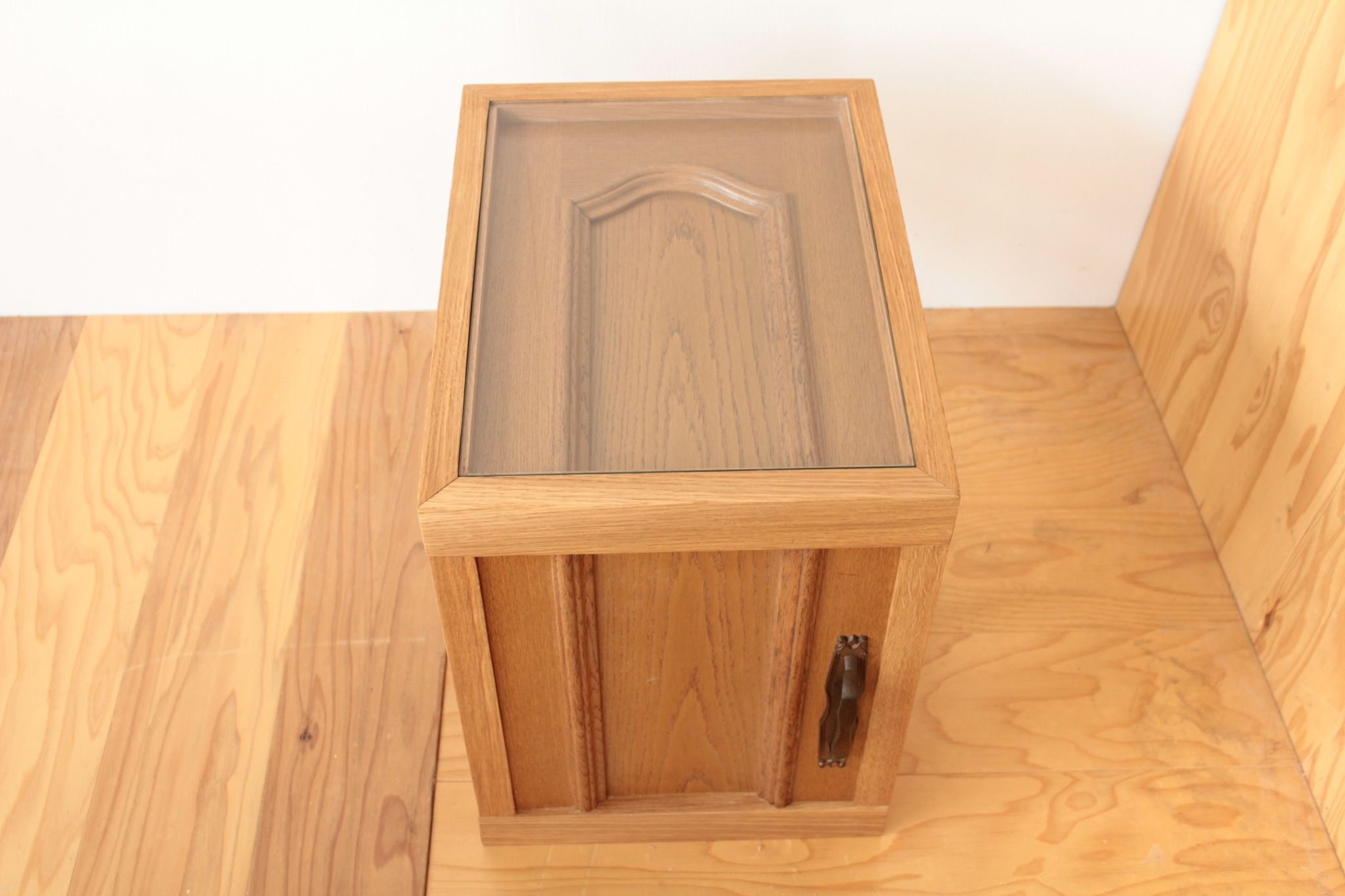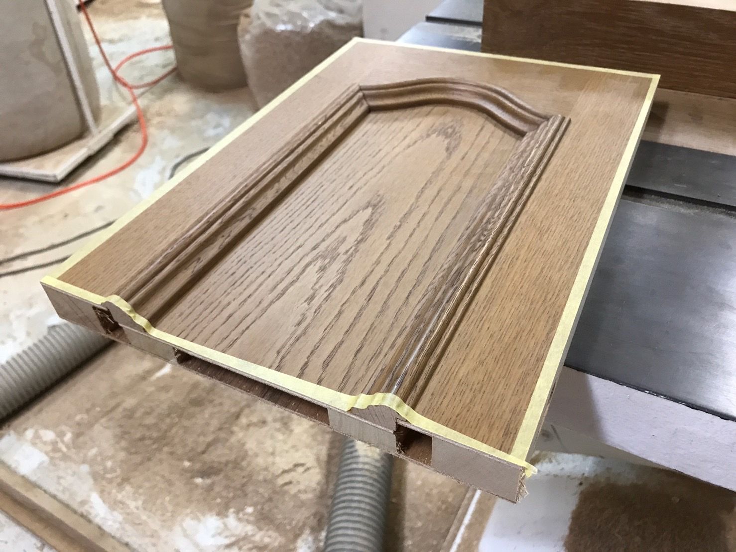 扉をカットし、無垢オーク材で囲った後、ガラスをはめ込みました。とても可愛い!