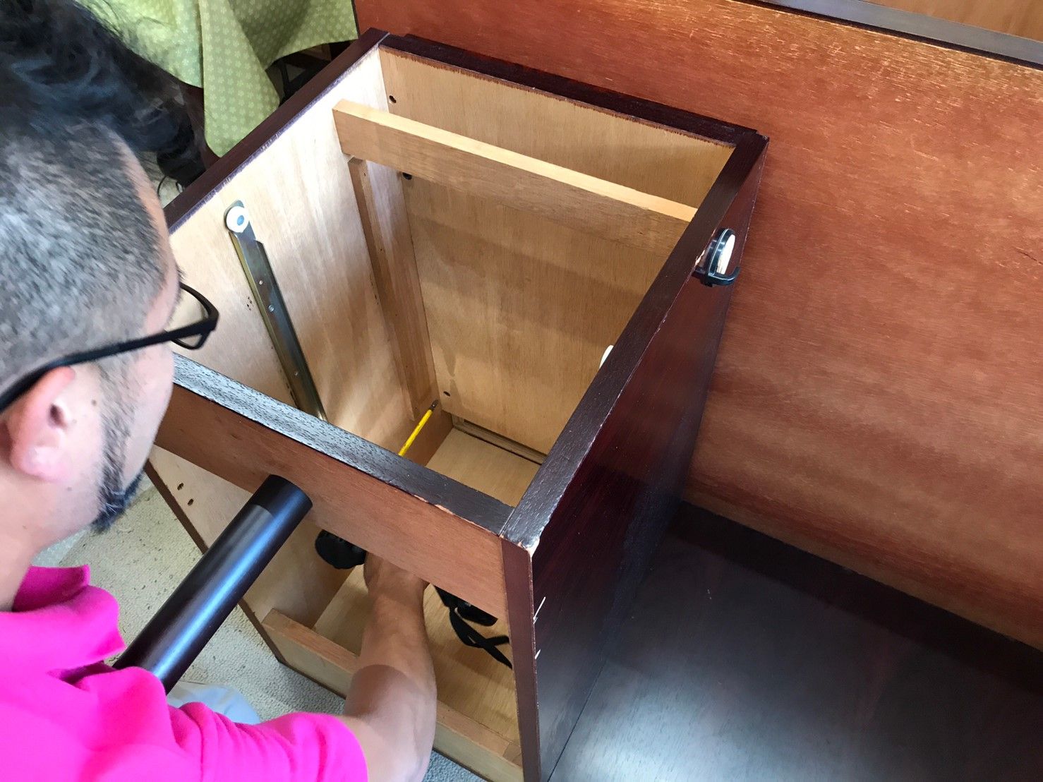 次に引き出し部分です。天板の奥行を150㎜カットしたので、その分引き出しもサイズの調整が必要です。