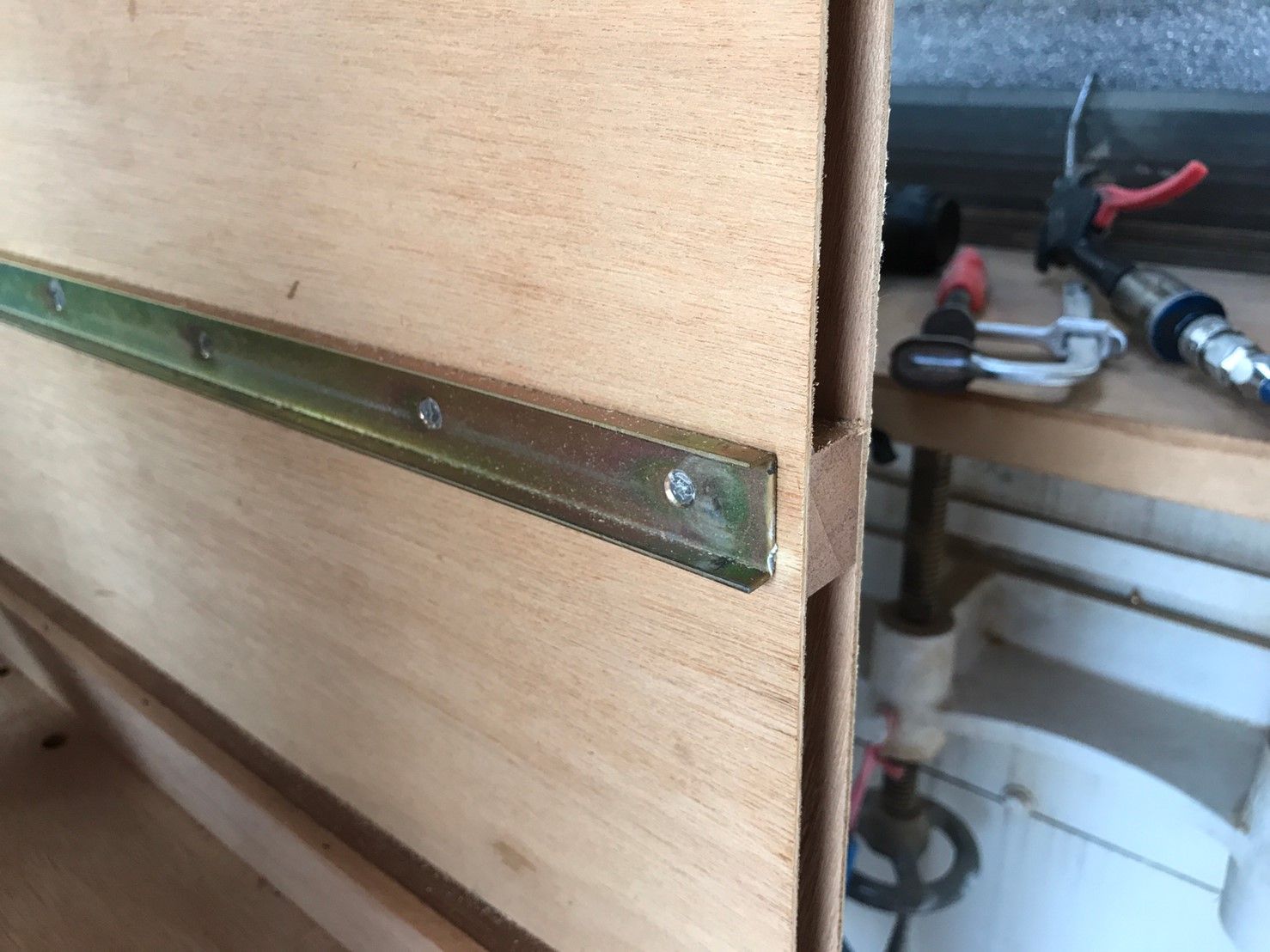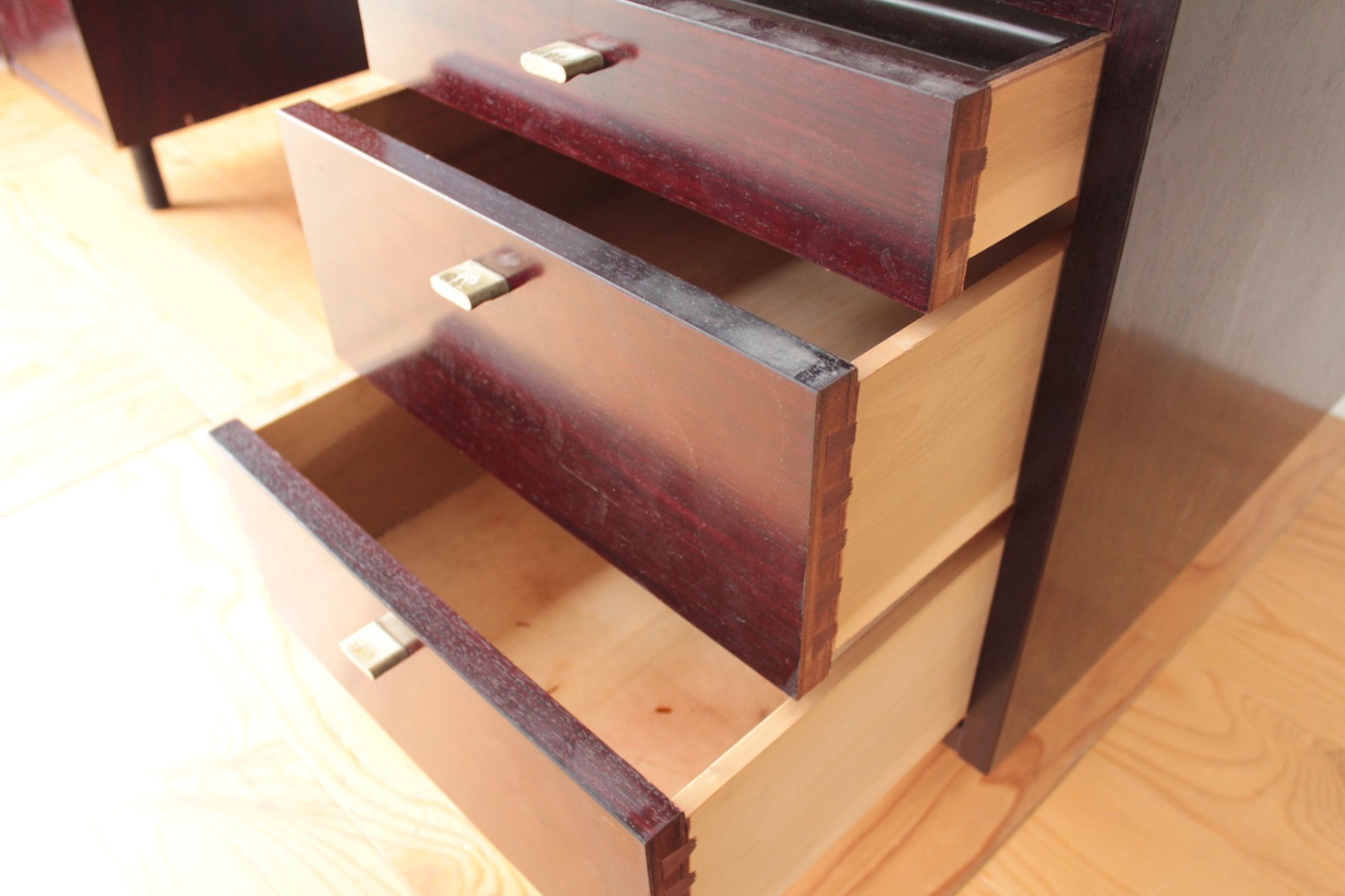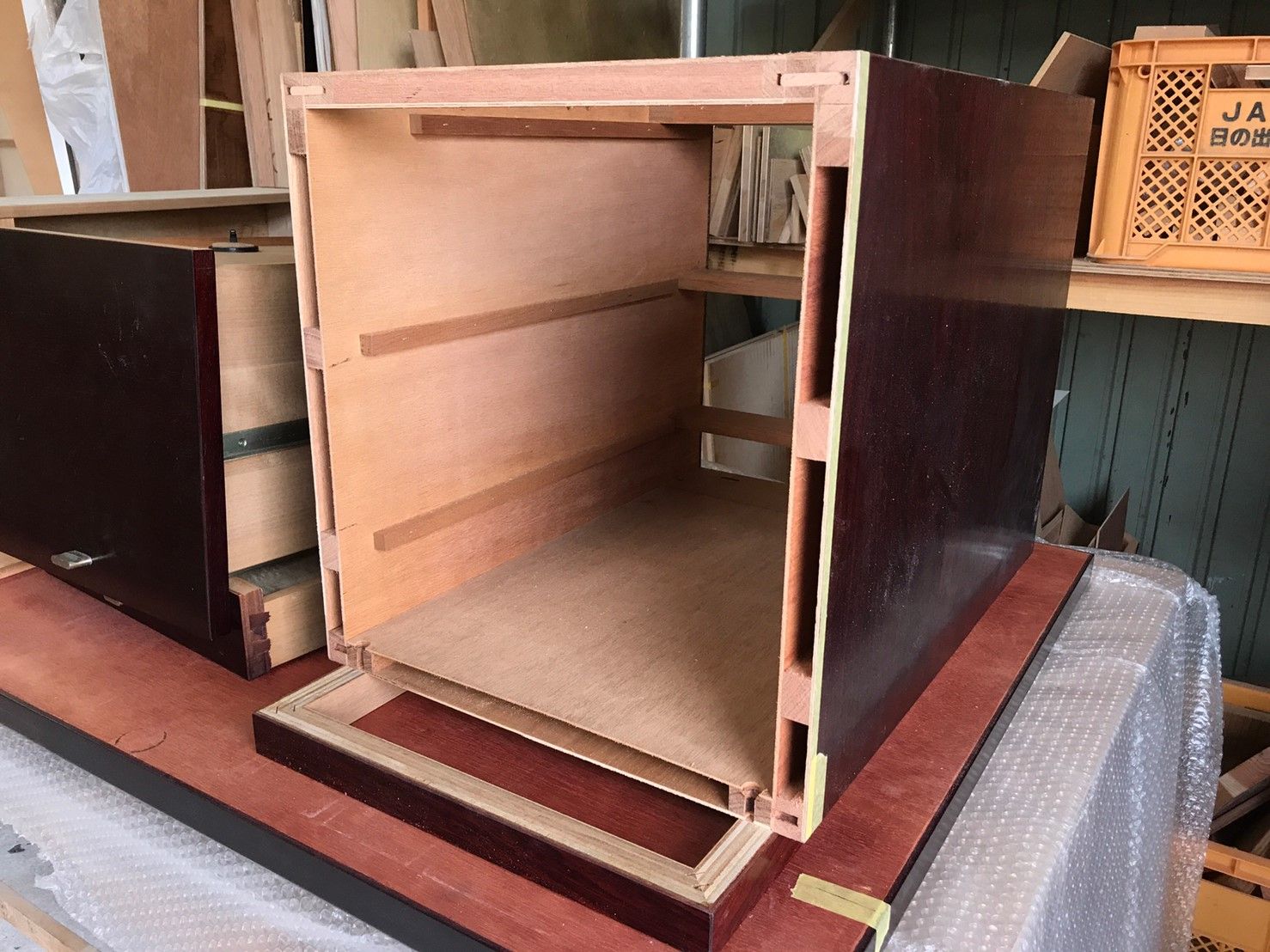 引き出しの本体側は分解が出来なかったので、ビス埋め木で後ろ側の底板を入れ直しました。