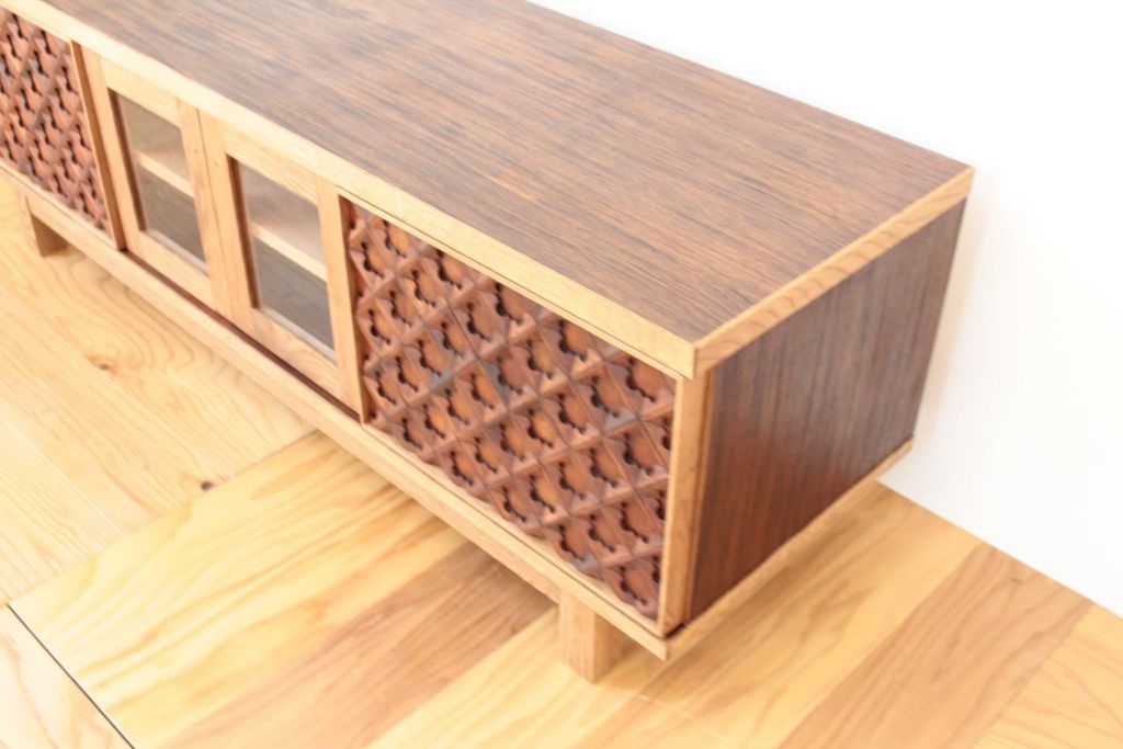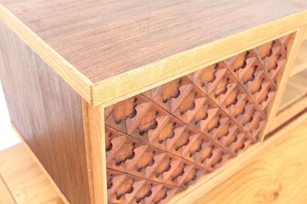 お客様からは「できるだけ元のタンスの素材を使いたい」とご希望いただいていたので、加工の難しいタンスの側板などもテレビボードの天板や側板に使用しました。