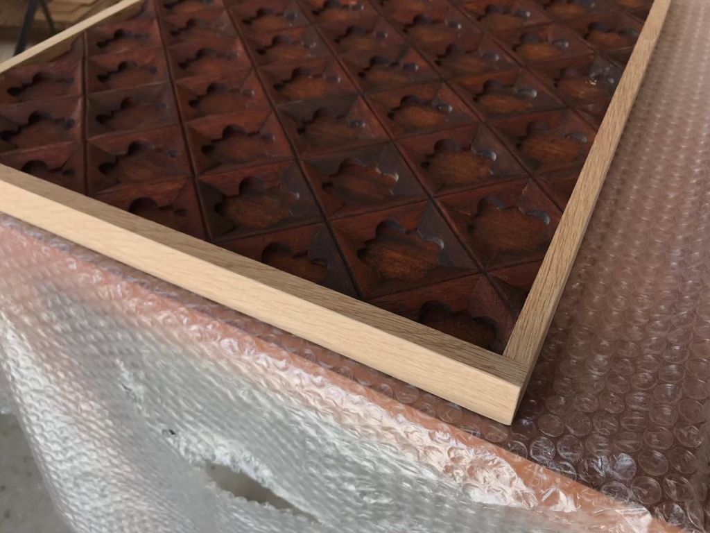 オークの枠で囲い、開き扉に仕立てます。