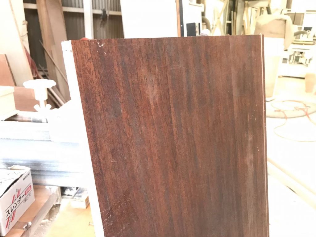さて、今回のテレビボードは、2枚あった婚礼タンスの扉のうち1枚を使用してリメイクしました。