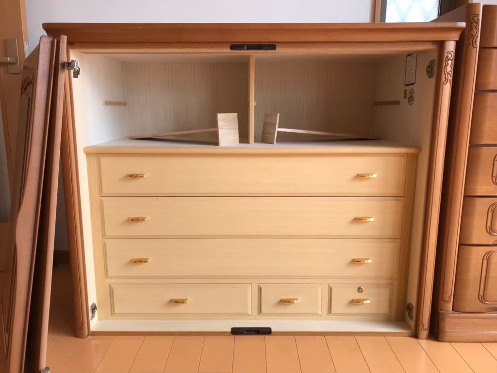 それは、こちらの引き出し収納部分は処分してしまうのかということ。綺麗に使われていてとても素敵なタンスです。