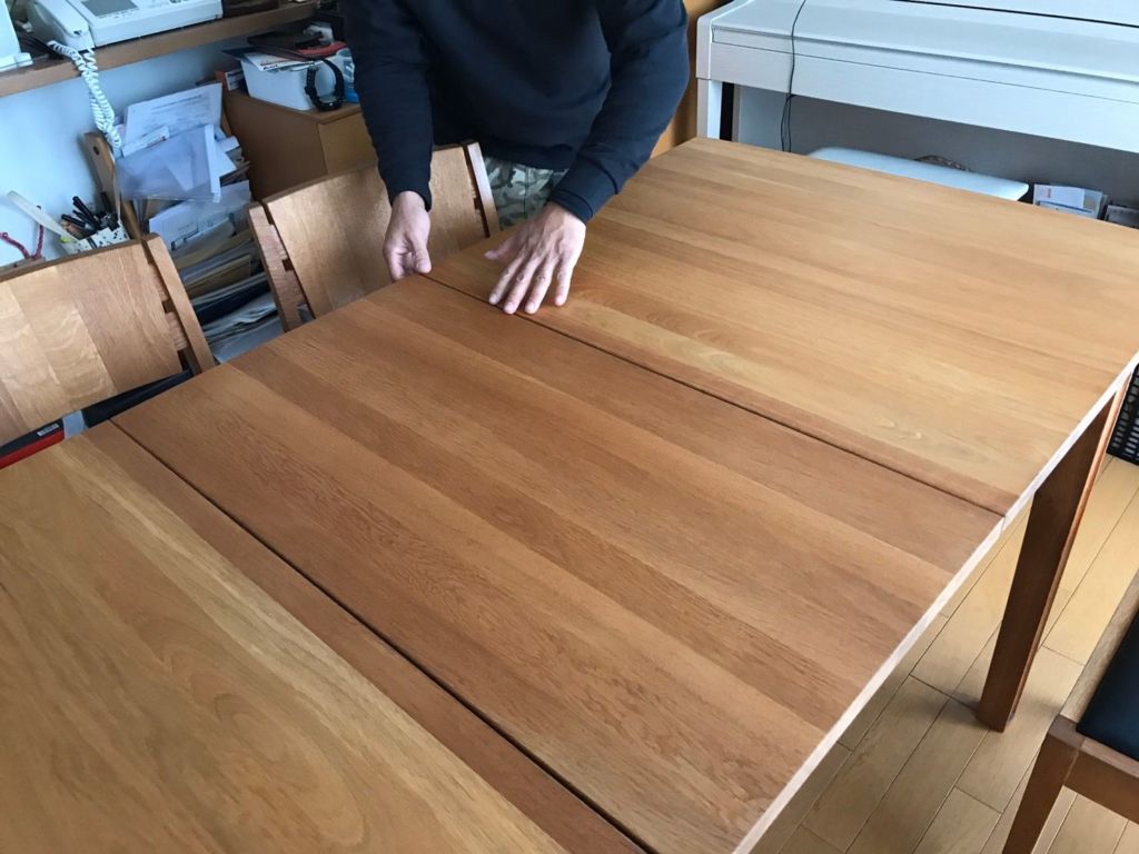 ・伸縮式のダイニングテーブルを形はなるべくそのままに、天板サイズを小さくしたい。