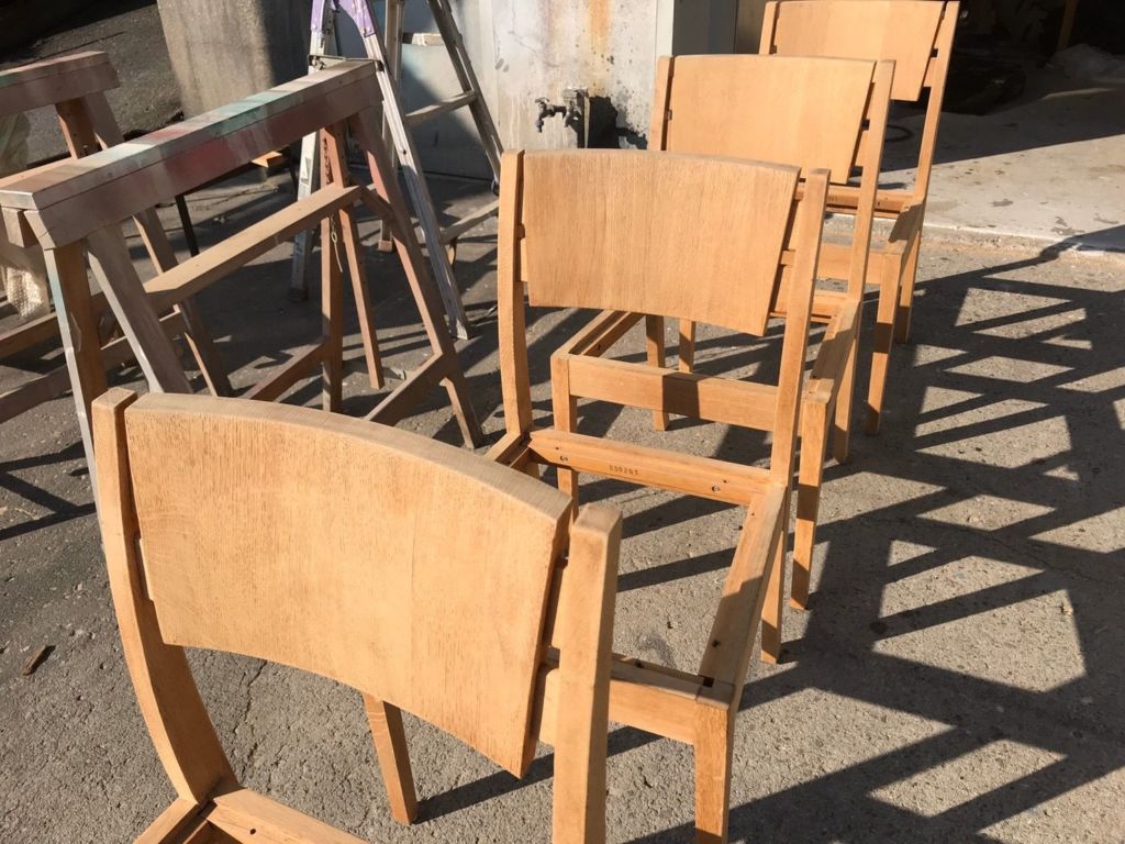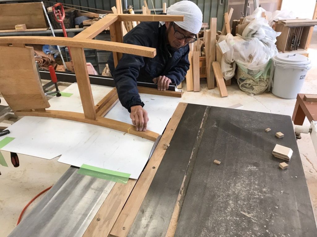 せっかく座面を張り替えるんだったら元々使われていた座板も作り直して、より永く使ってもらえる丈夫なものにしよう!ということでベニヤ材で作り直しました。