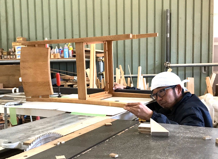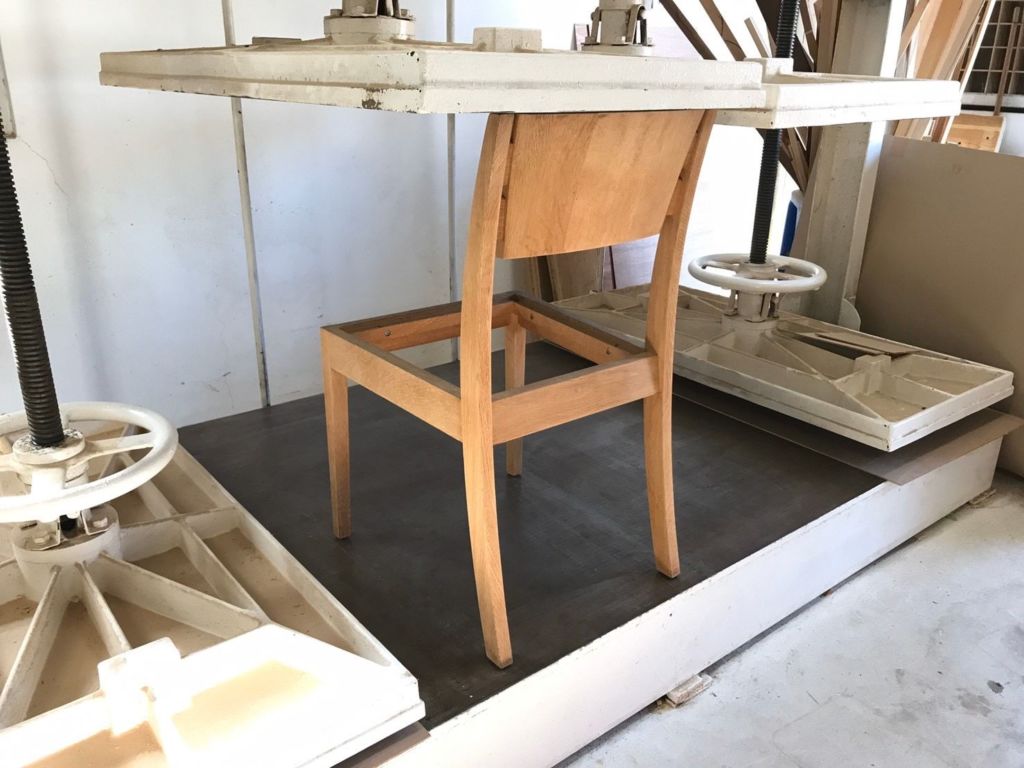 全部一緒の高さに揃えて終わり!!というわけではなく、1mm高さが違うだけでも実際に座るとかなりガタつきが出来てしまうので横切り盤を使って慎重に作業していきます。