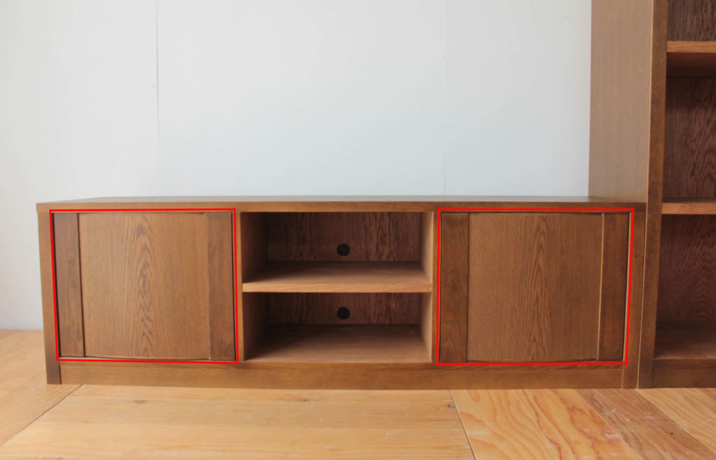今日解説しちゃうのはこの婚礼家具をリメイクしたテレビボードのチャームポイントの扉について。