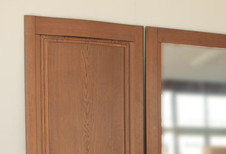 そこでなるべく鏡板と元の扉の枠の印象が強く残るように、厚さの薄い無垢材で扉の上下を覆うようにしたそうです。