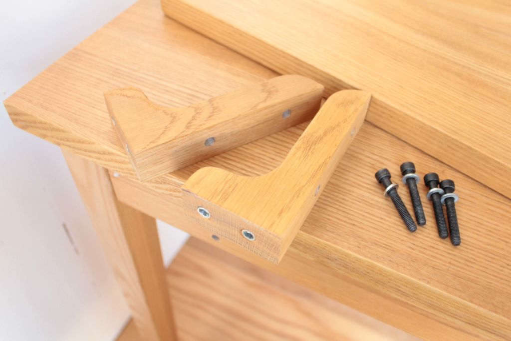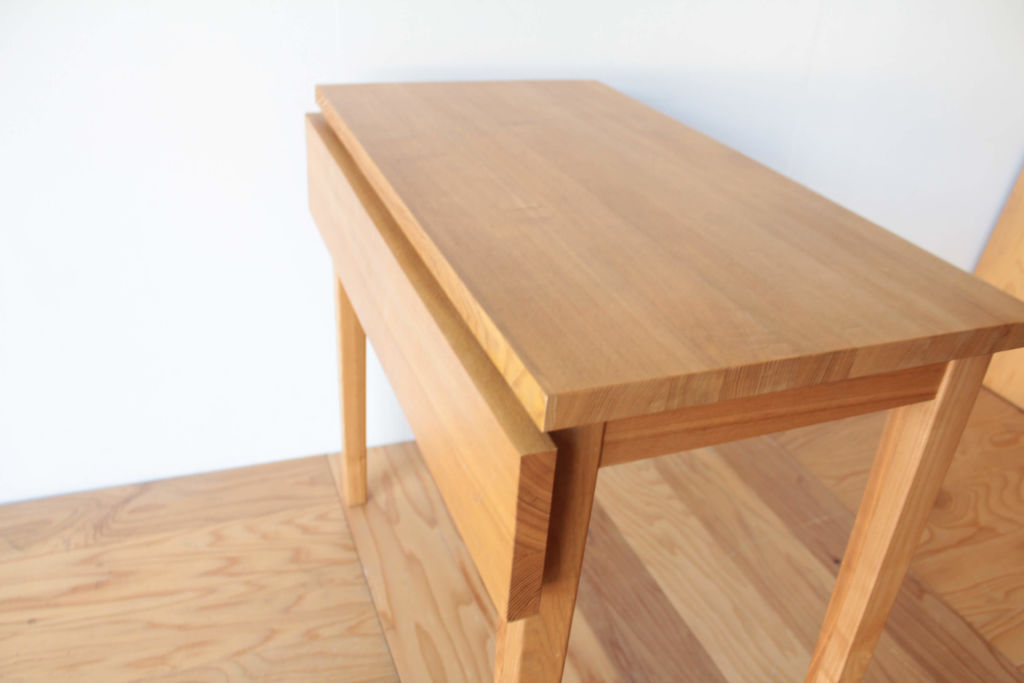 そしてお打ち合わせの結果、机の奥行きを縮めて、天板をカットした部分を150mmの延長用天板に仕立て直し、その延長用天板は天板脇に収納可能&六角レンチで取り付け/取り外しできるようにリメイクしました。
