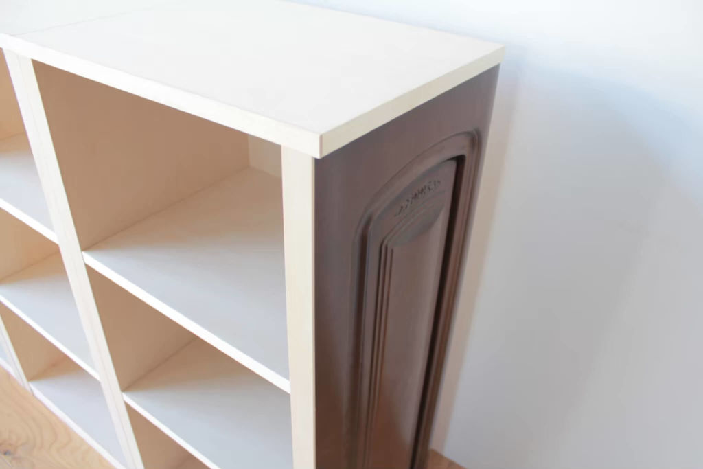 婚礼家具の扉を収納力の高い本棚にリメイク!コントラストがお洒落♪
