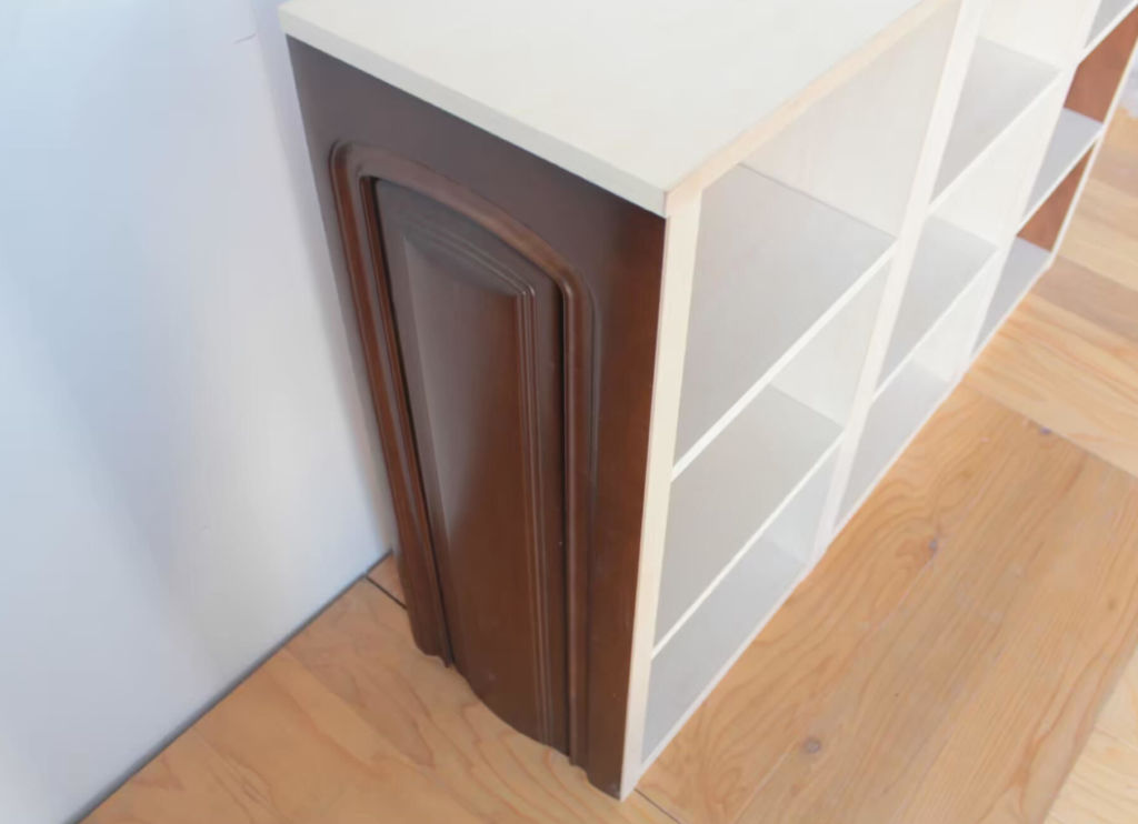 カウンターの奥行きが350mmだったので、扉の幅をその大きさにカットして本棚の側板に使用することにしました。
