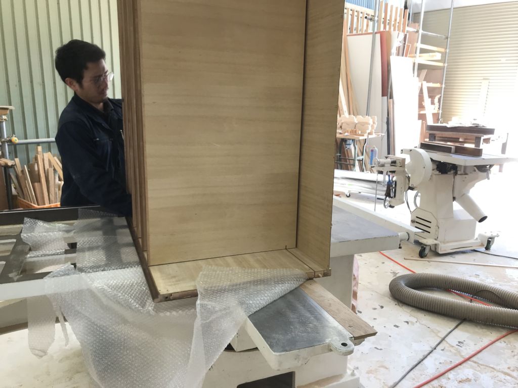 引き出しの前板を扉に加工する様子も、特別にチラリとお見せしちゃいます。