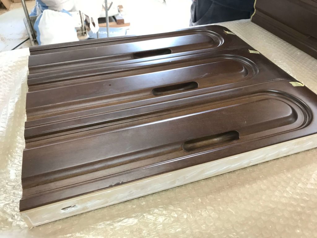 本体もそうですが、婚礼タンスのような箱物家具はフラッシュ構造といってこのように中が中空になっているので、ただカットしてサイズを縮めればいいというわけではありません。