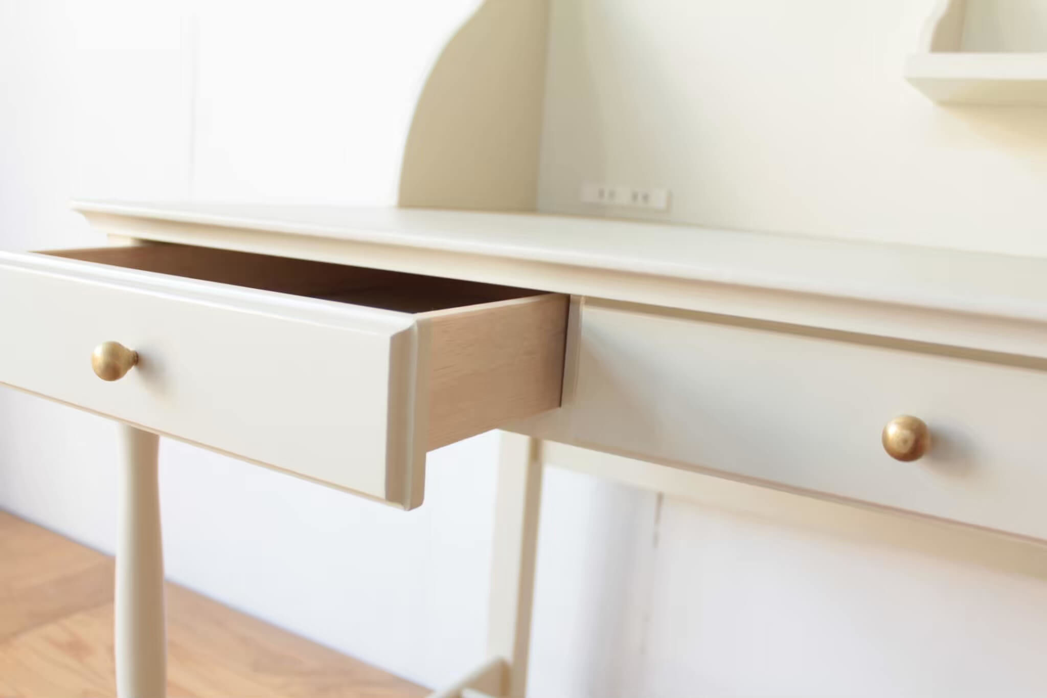 天板も、引き出しも、上置き棚も、魔法でリメイクされたのではないかと思ってしまうほど自然な仕上がりです。