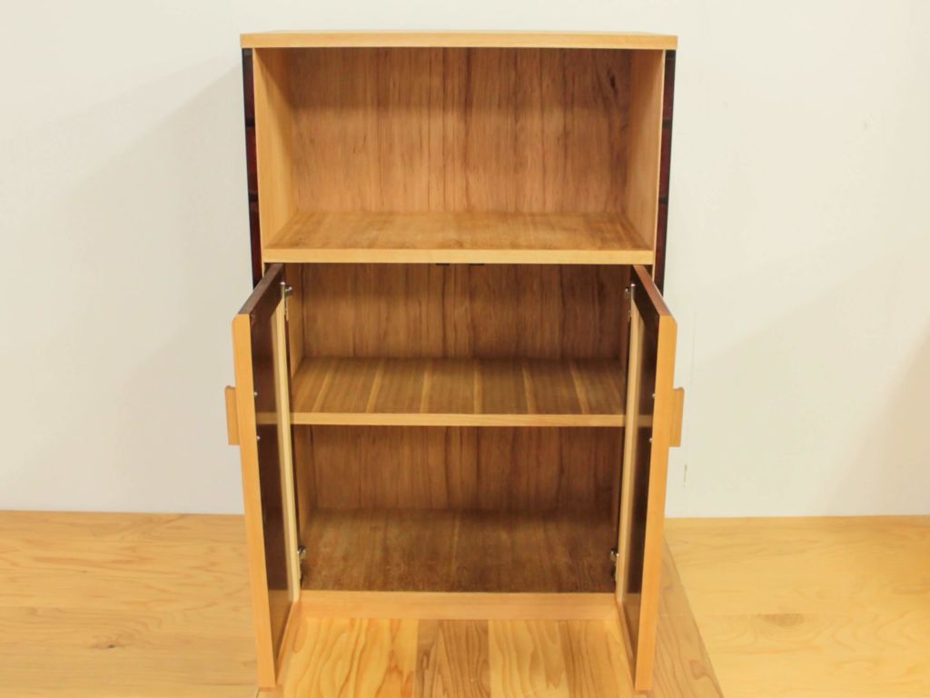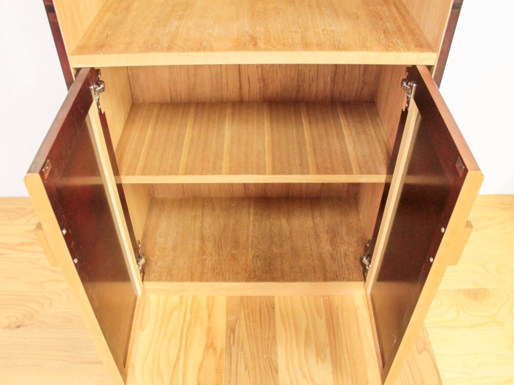 そして、お気づきでしょうか。オープン部分もそうですが、内部(棚板や背板)にも婚礼タンスの材を使用しているのです。