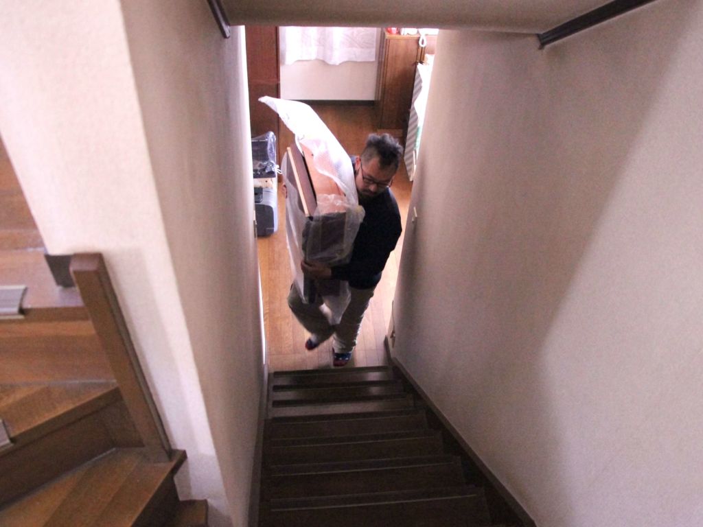 お客様のお家に到着したら、まずシングルロッカーの搬入から始めました。