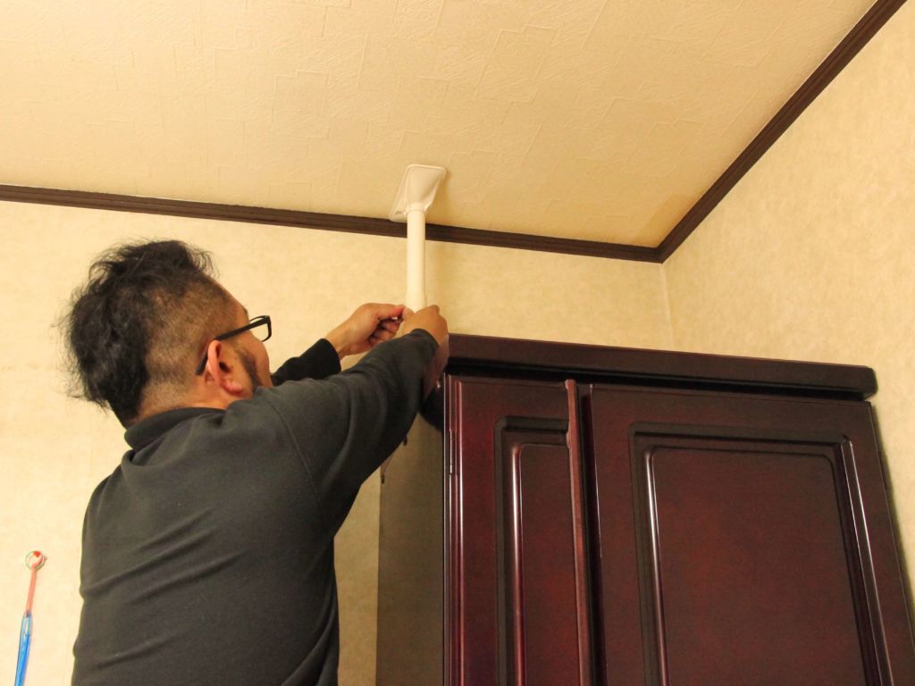 お客様から、念のため転倒防止の突っ張り棒をつけて欲しいとご希望いただき取り付けました。