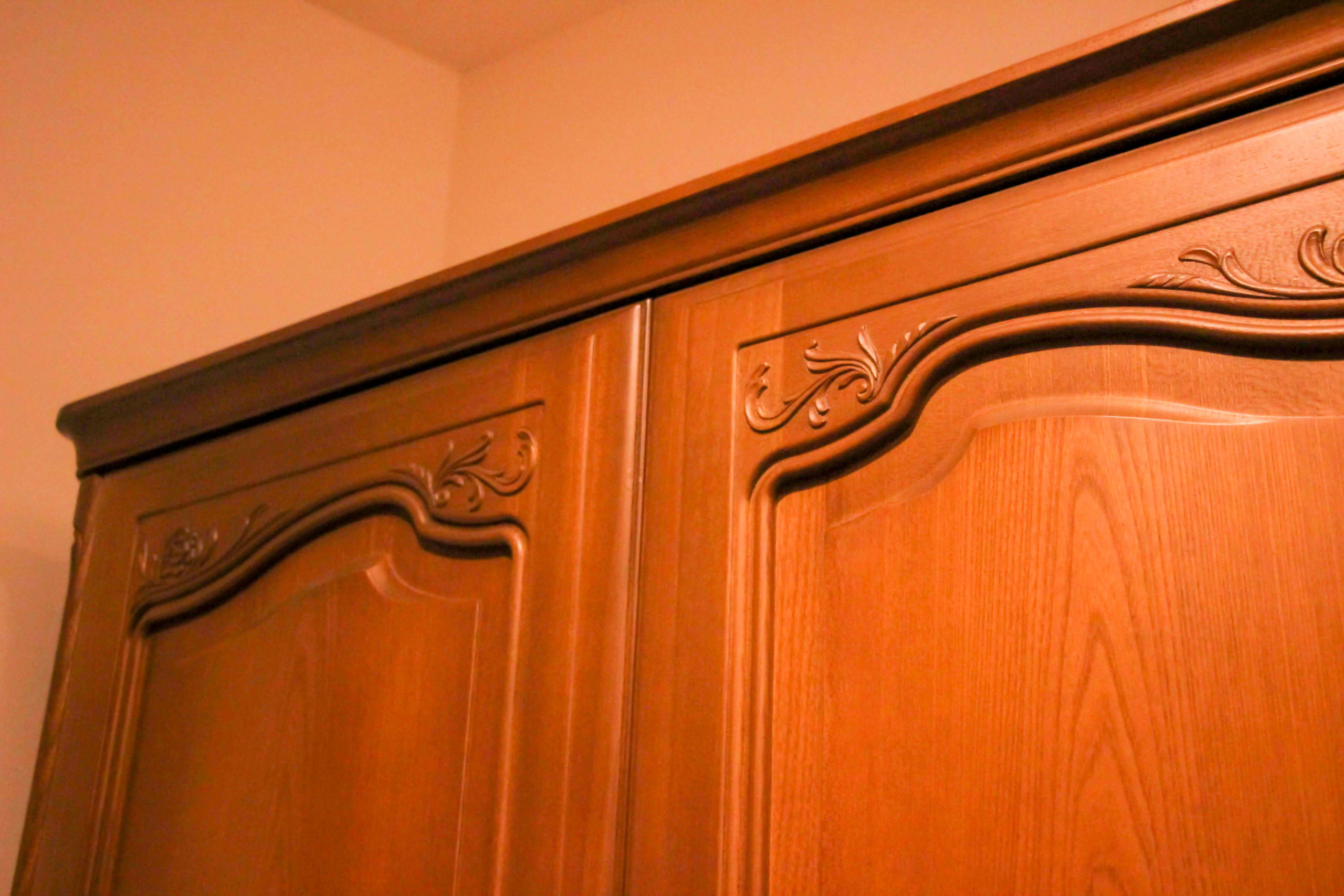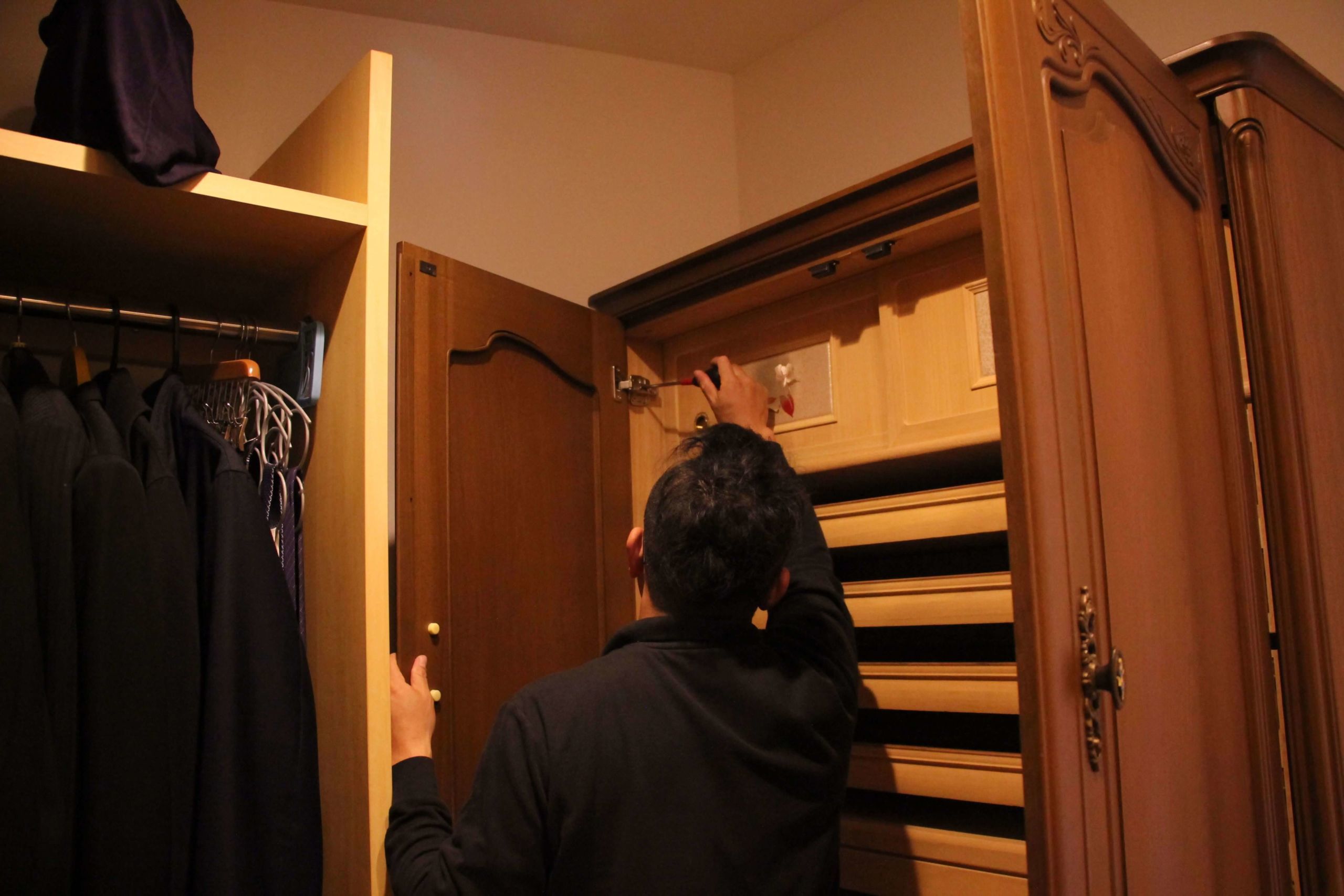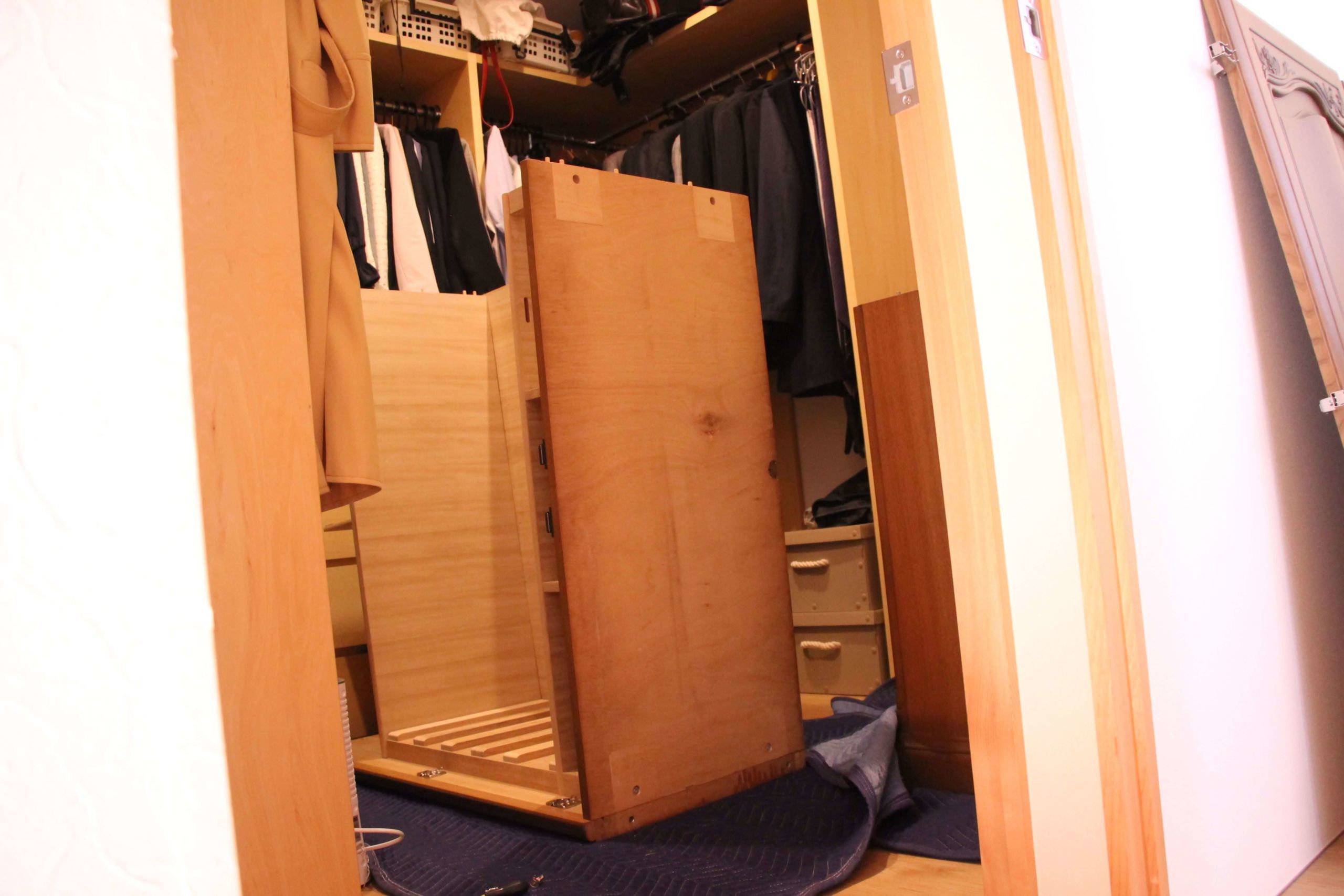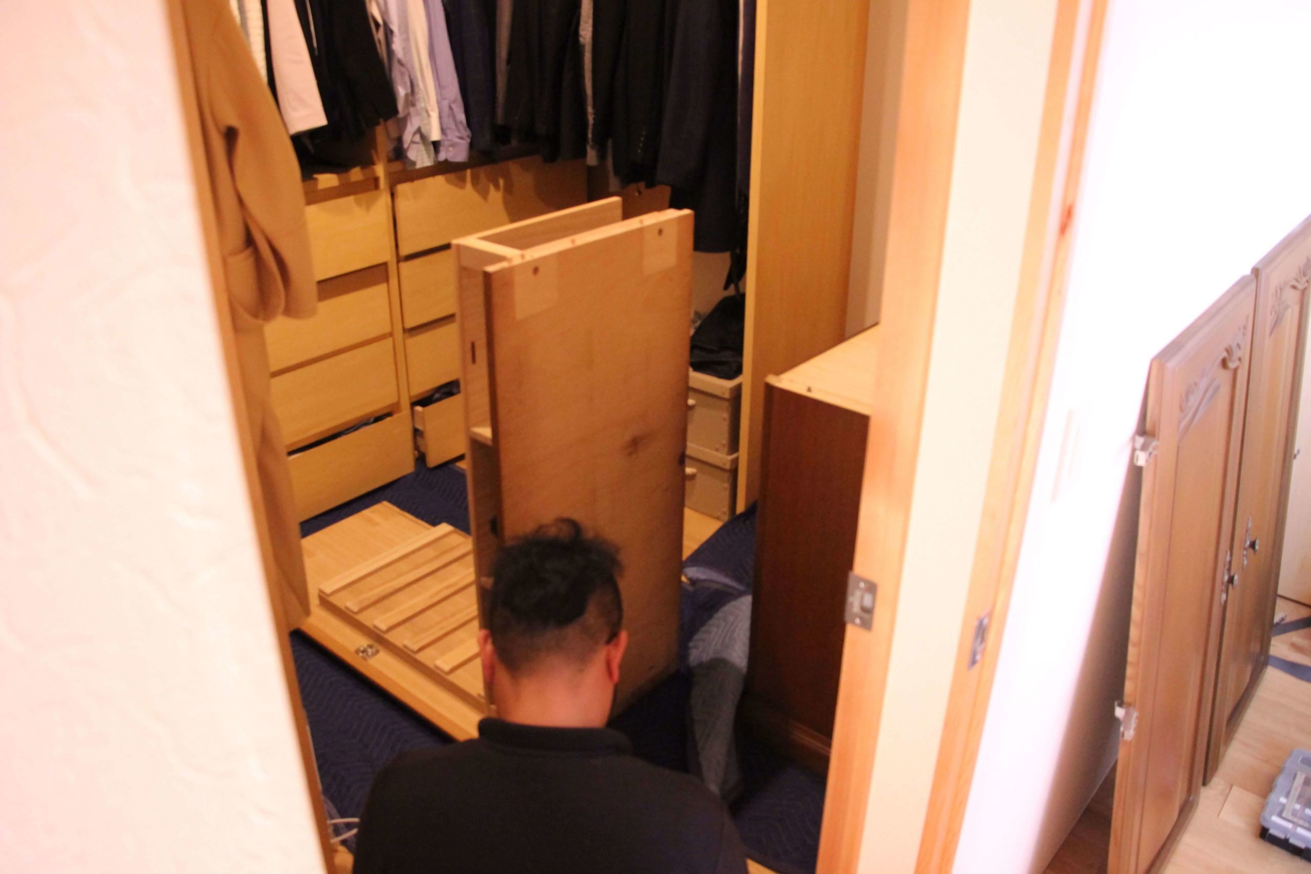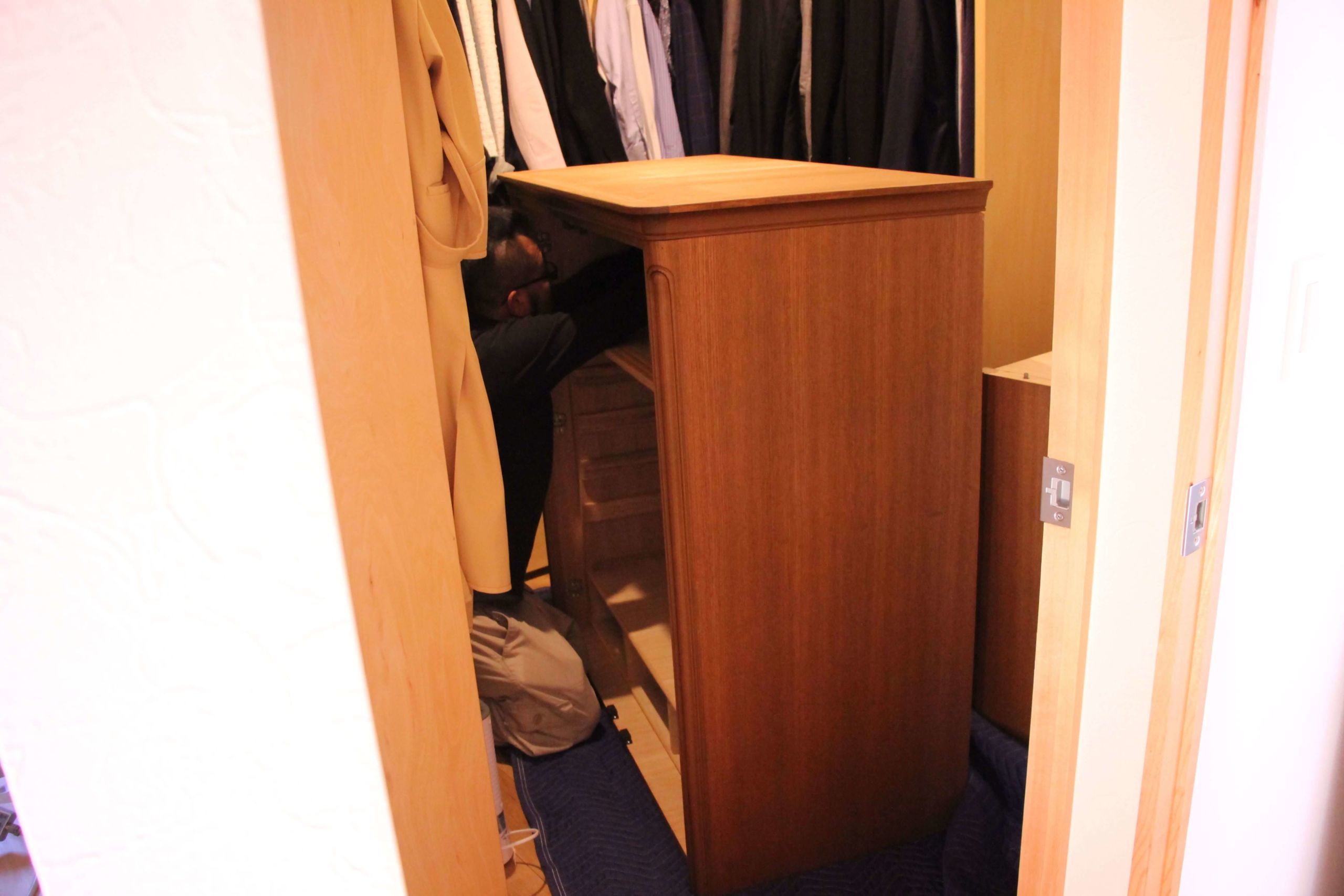 お客様は元通りの婚礼タンスがウォークインクローゼットに設置されているのをご覧になって驚かれていました。なにしろそのままの形では絶対に搬入できないはずの婚礼タンスだったので・・・