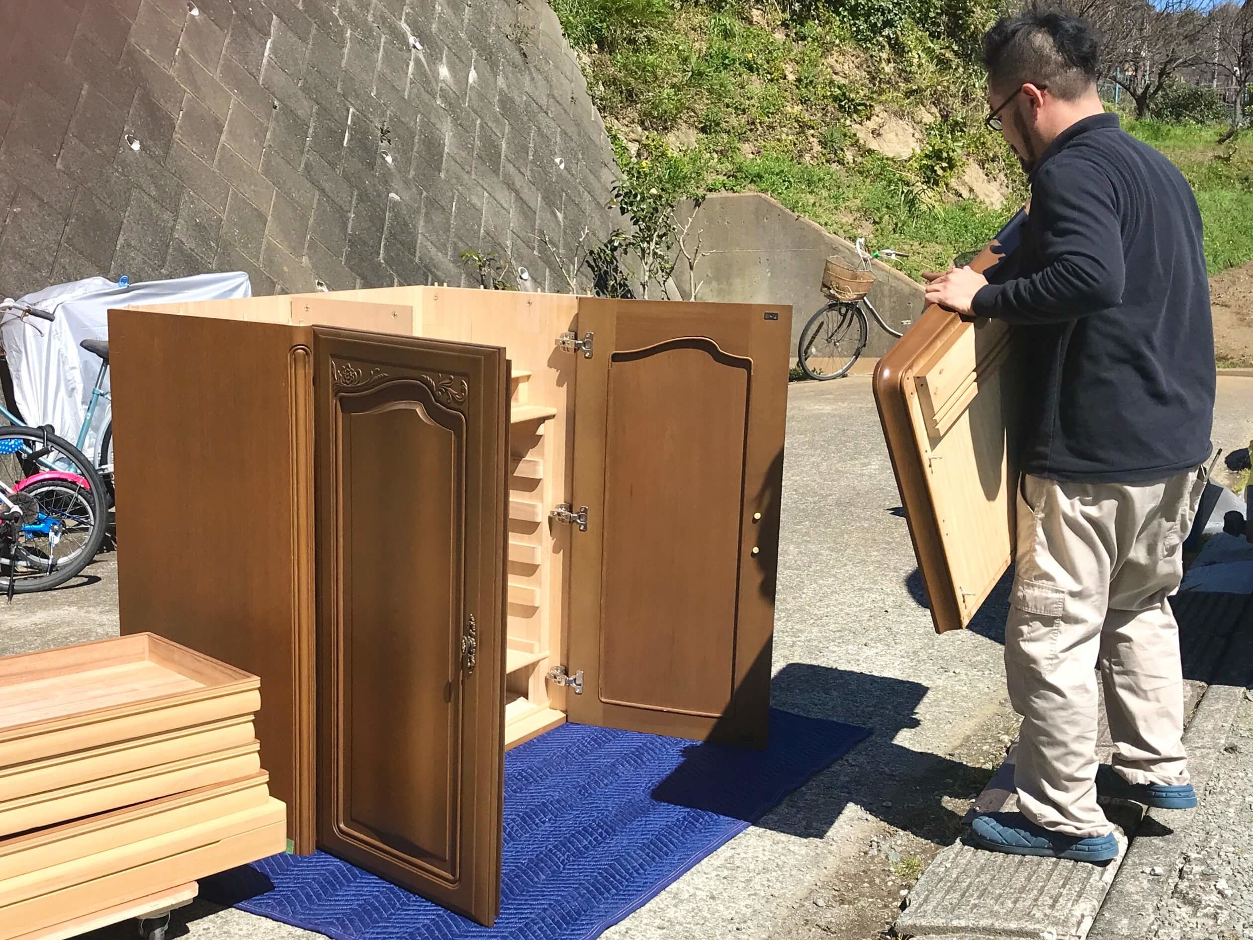バラバラになった部材を運びながらも、これらがまた一つのタンスに組み上がるなんて信じられませんでした。