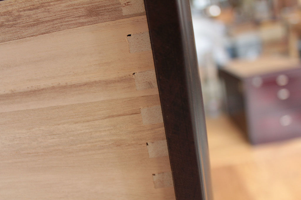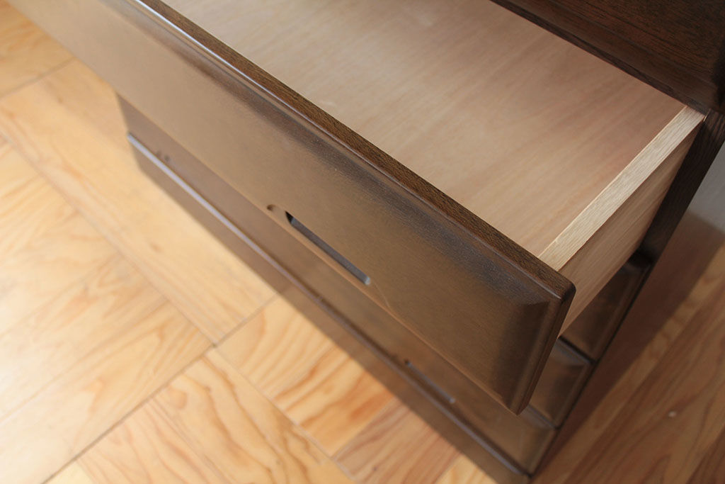 そこで、お客様とご相談の上、無垢材でできている引き出しはリサイズして使い、フラッシュ構造の本体は新規製作することにしました。