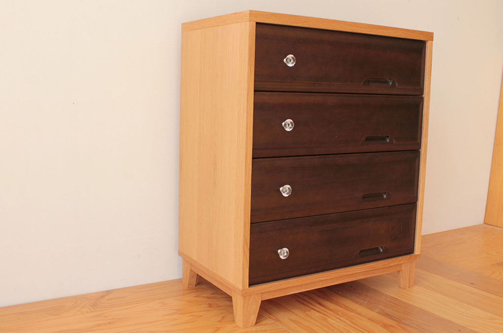 今回は、婚礼タンスの衣類を収納するという用途は変えずに、サイズと雰囲気が変わるようリメイクさせていただいた事例をご紹介します。